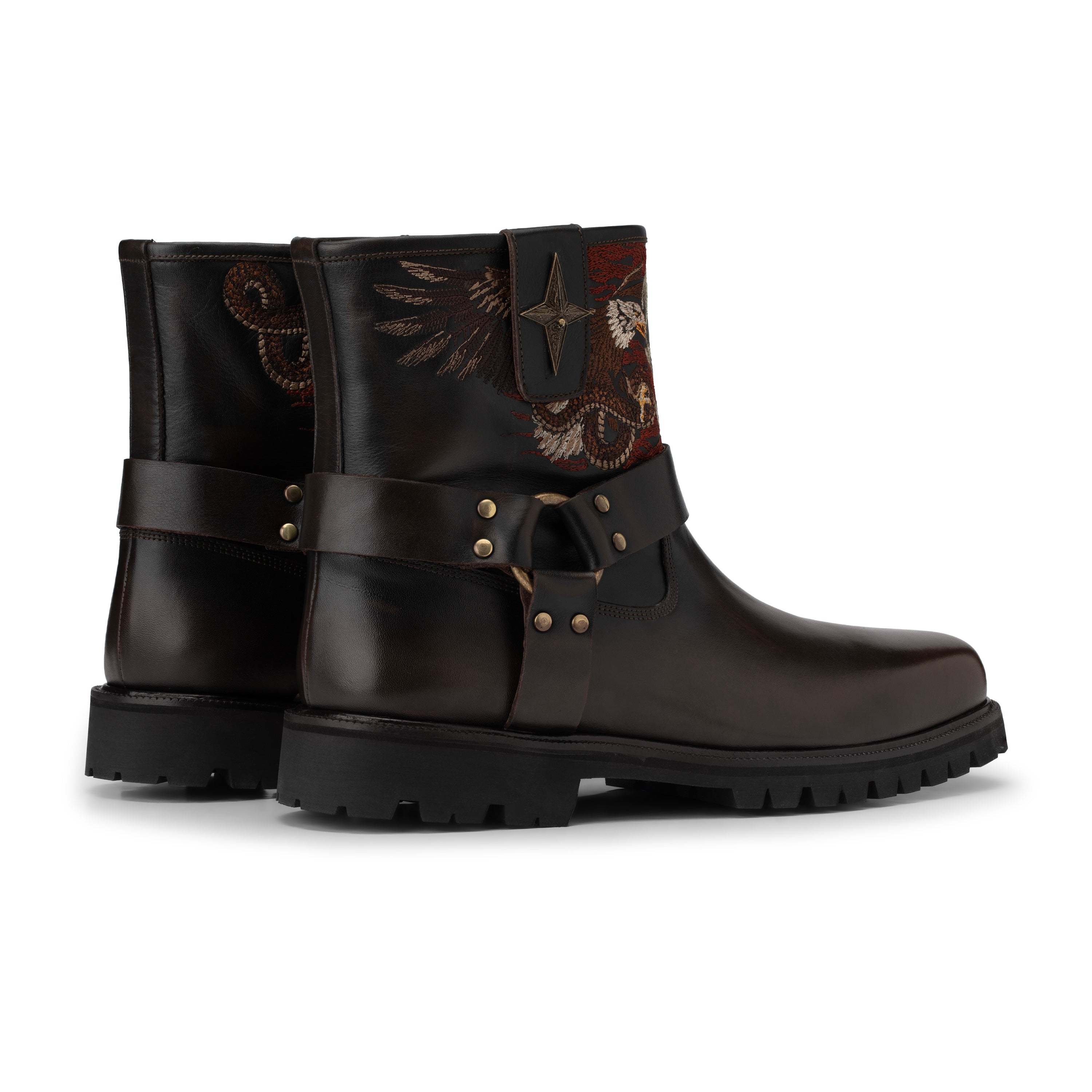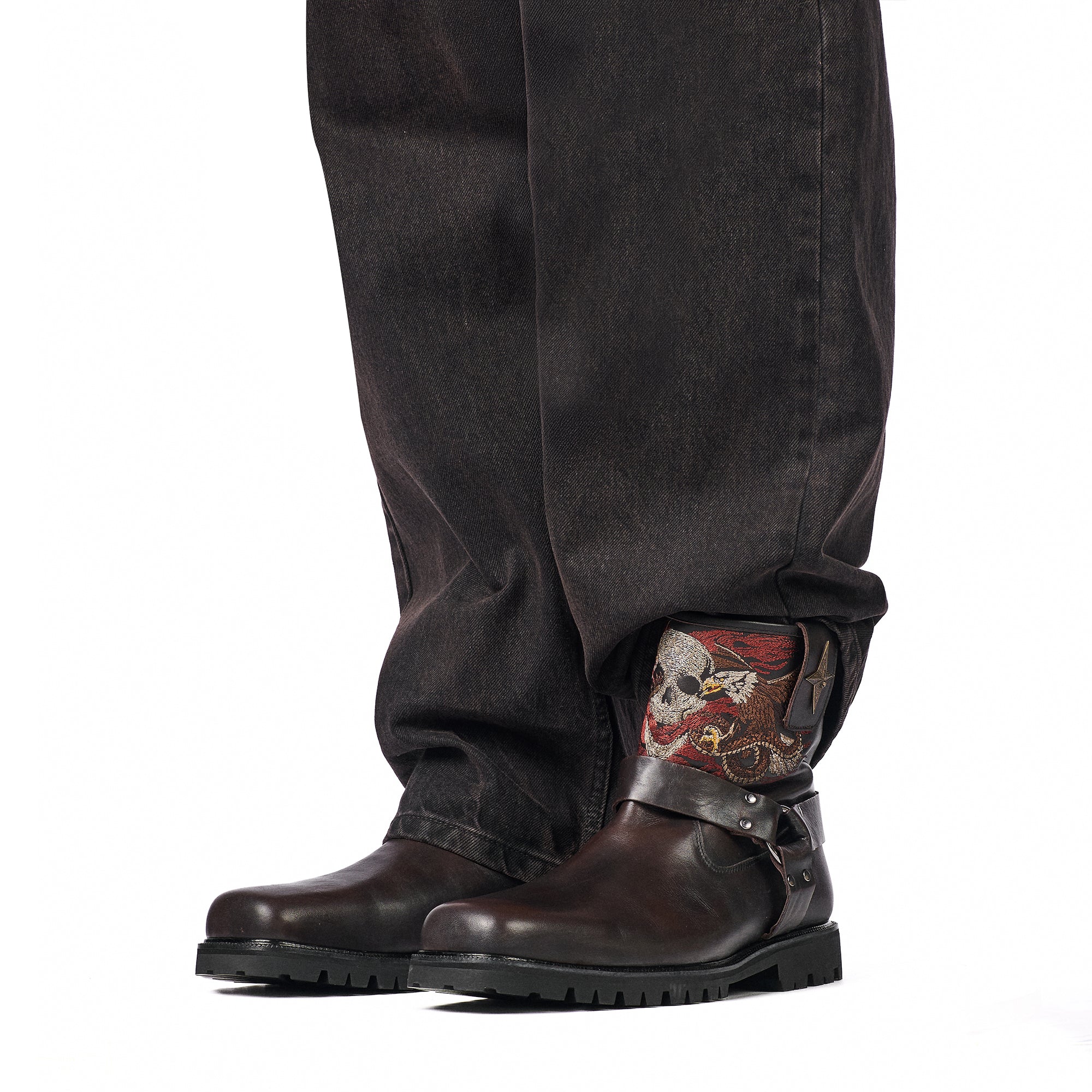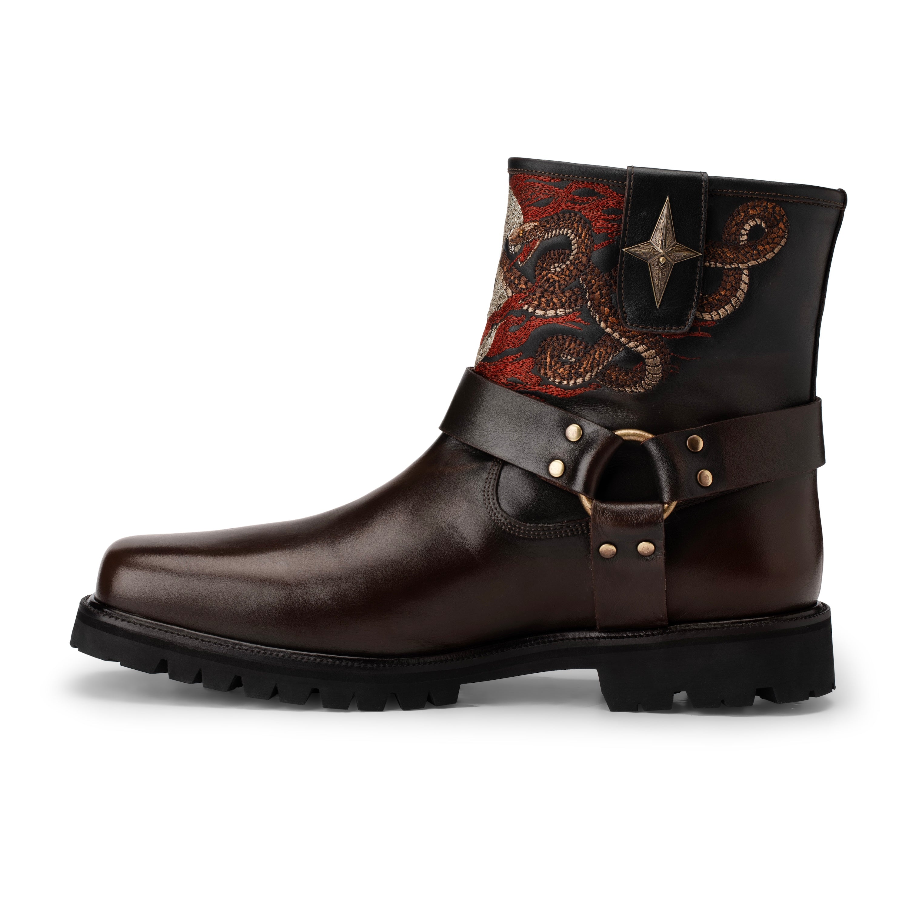 genuine leather / leather inner-lining / vibram sole / embossed insole / embroidered front shaft / antique brass-colored buckle / manufactured in Türkiye