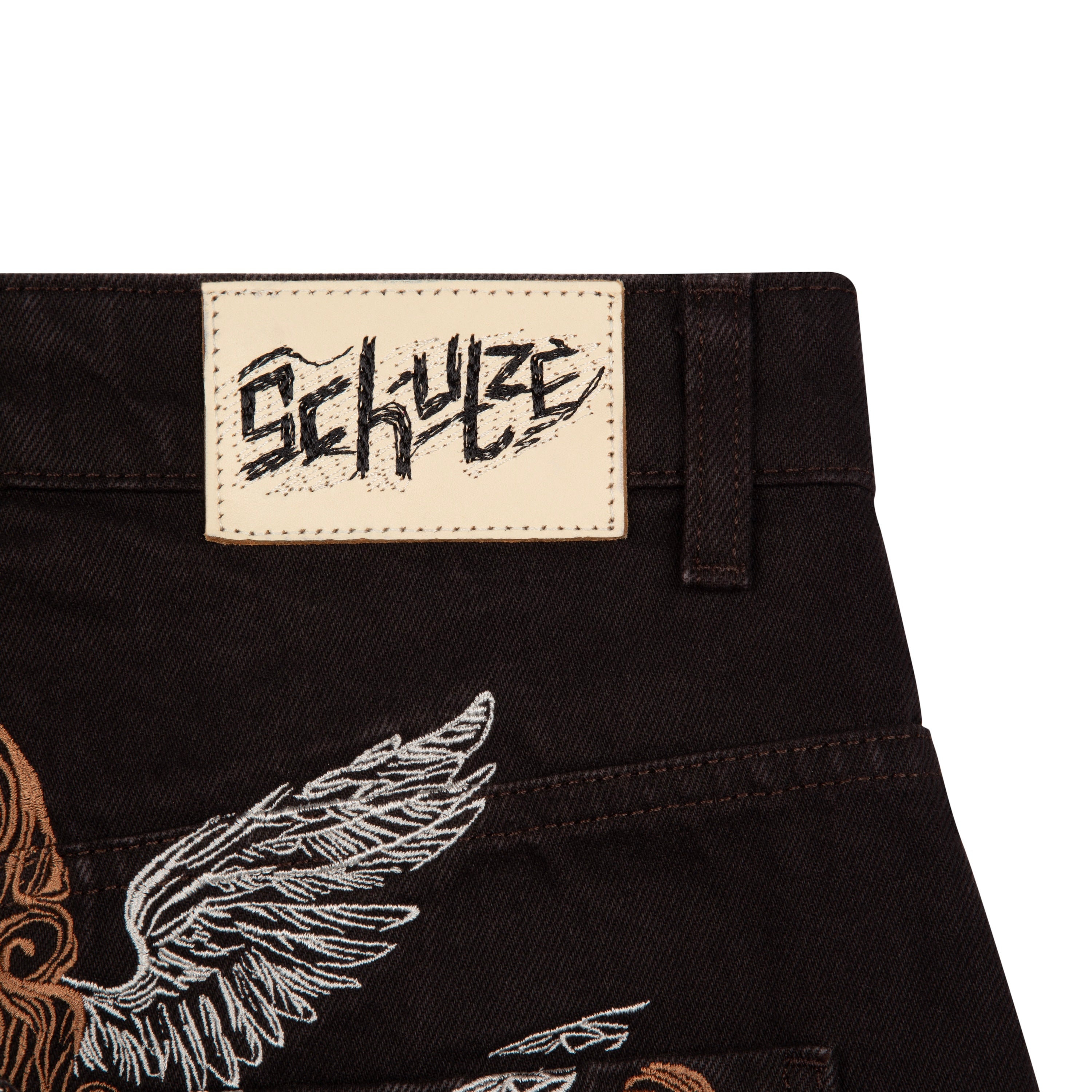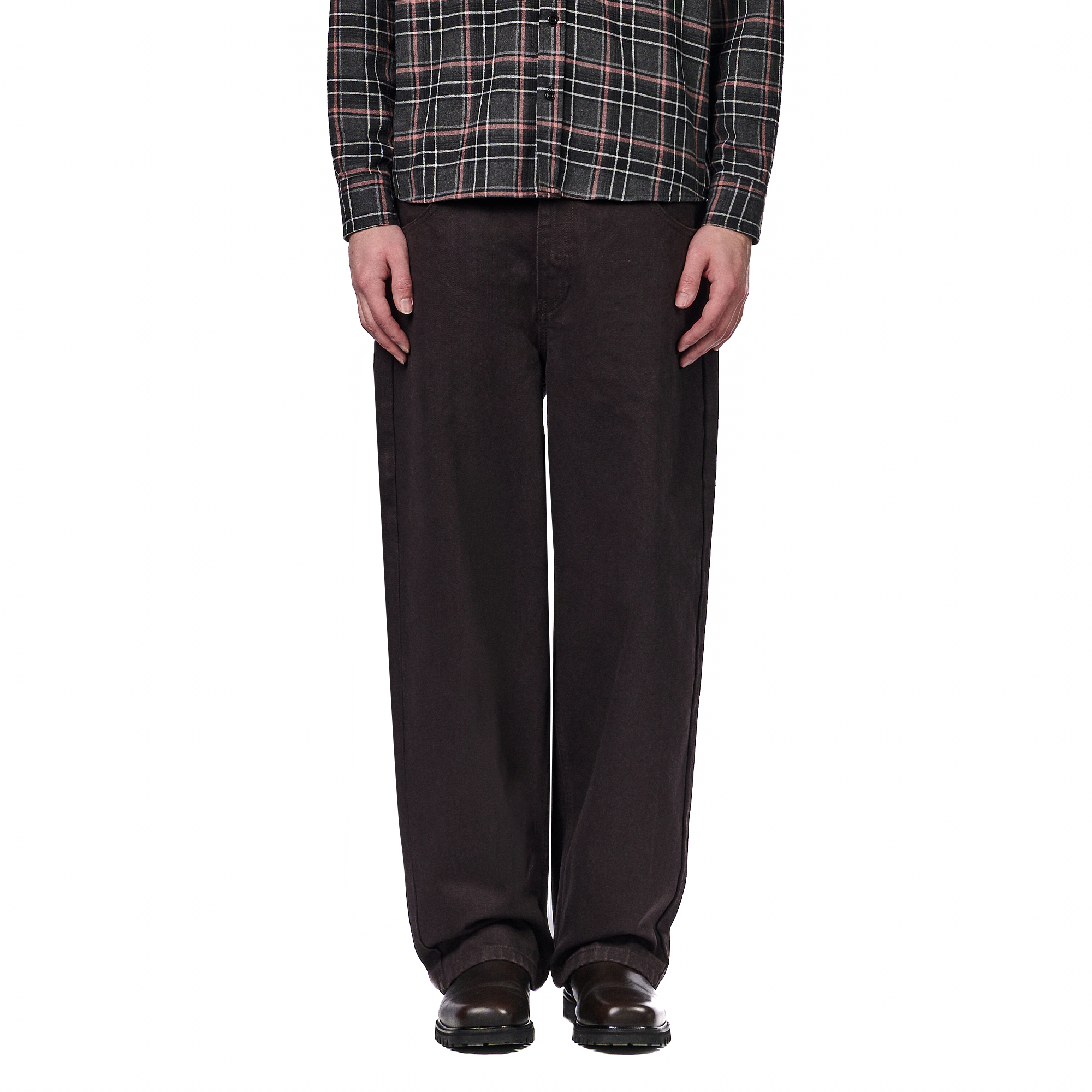 15oz denim / 100% cotton / embroidery on back / embroidered leather patch / wash inside out / balloon fit / fits true to size