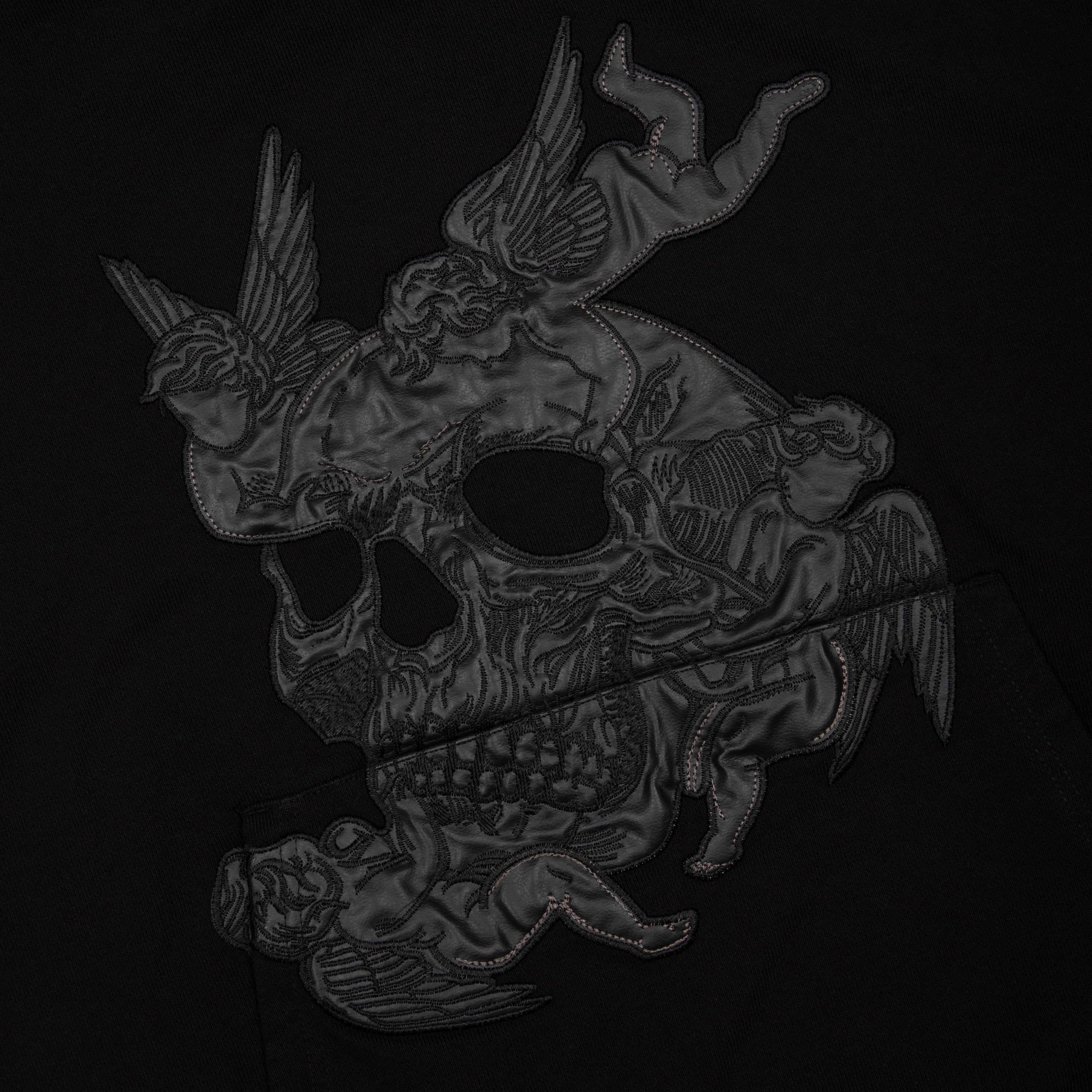 480gsm / 100% preshrunk cotton / vegan leather appliqué embroidery on front / fits true to size