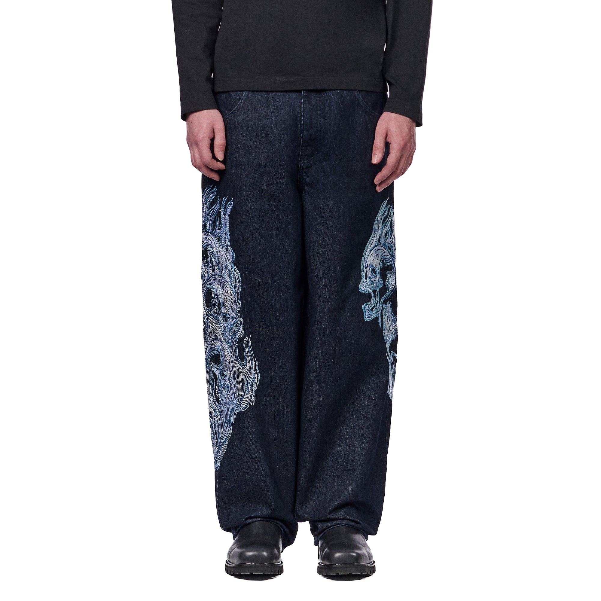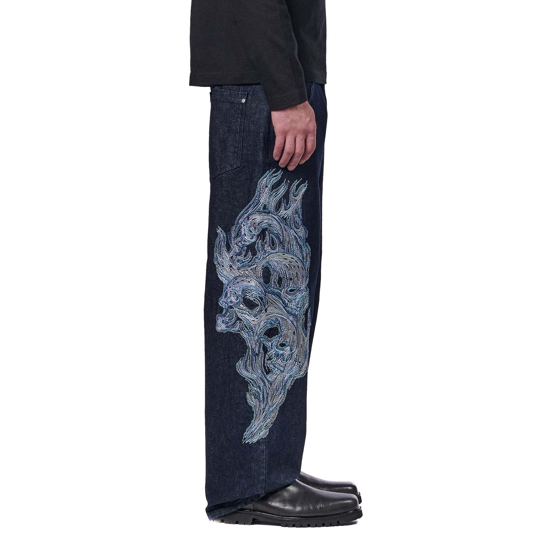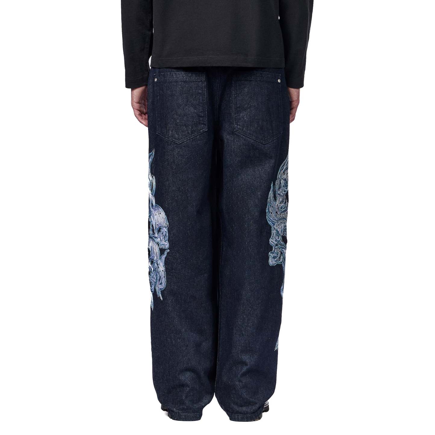 14,5oz denim / 100% cotton / embroidery on front and back / embossed printed leather patch / wash inside out / balloon fit / fits true to size