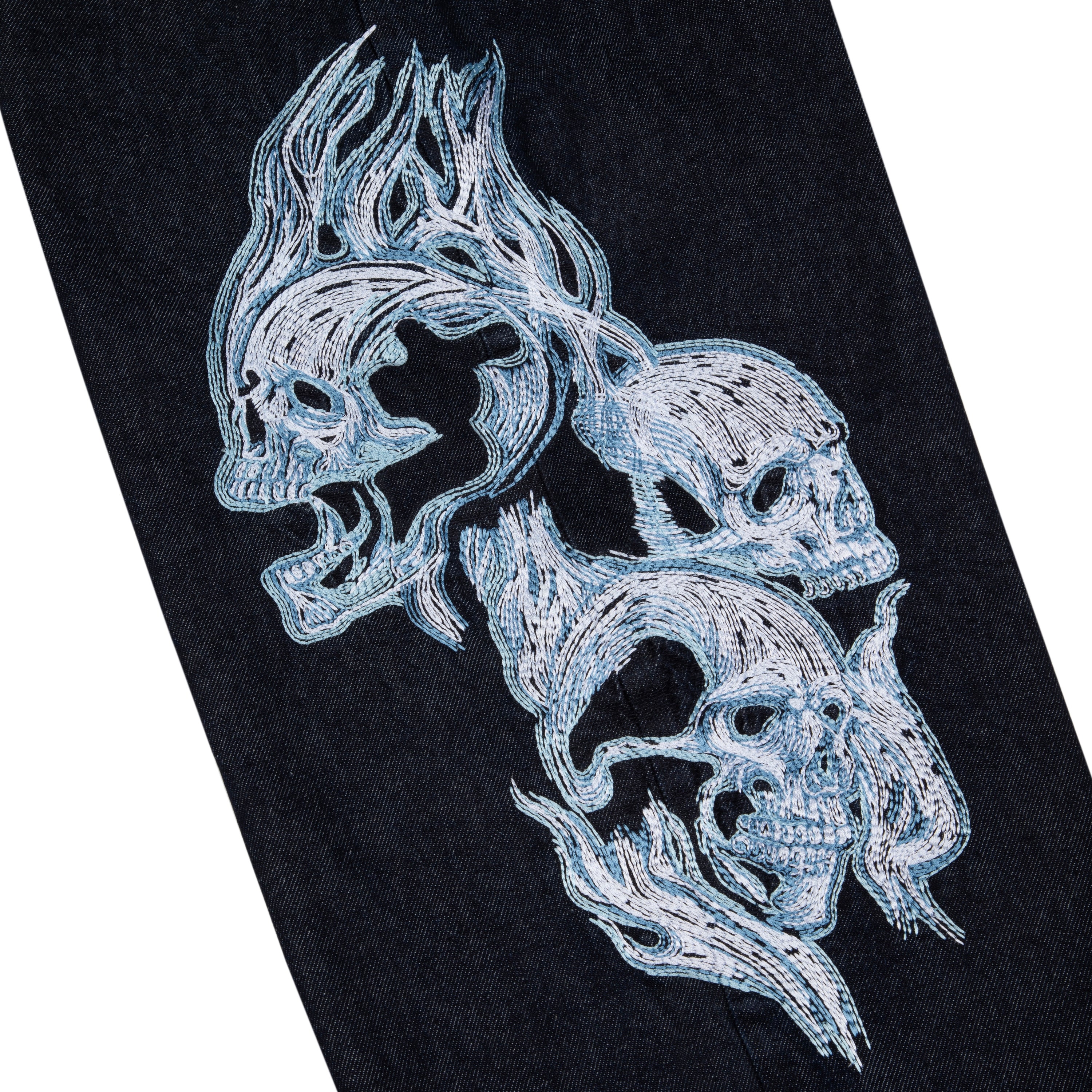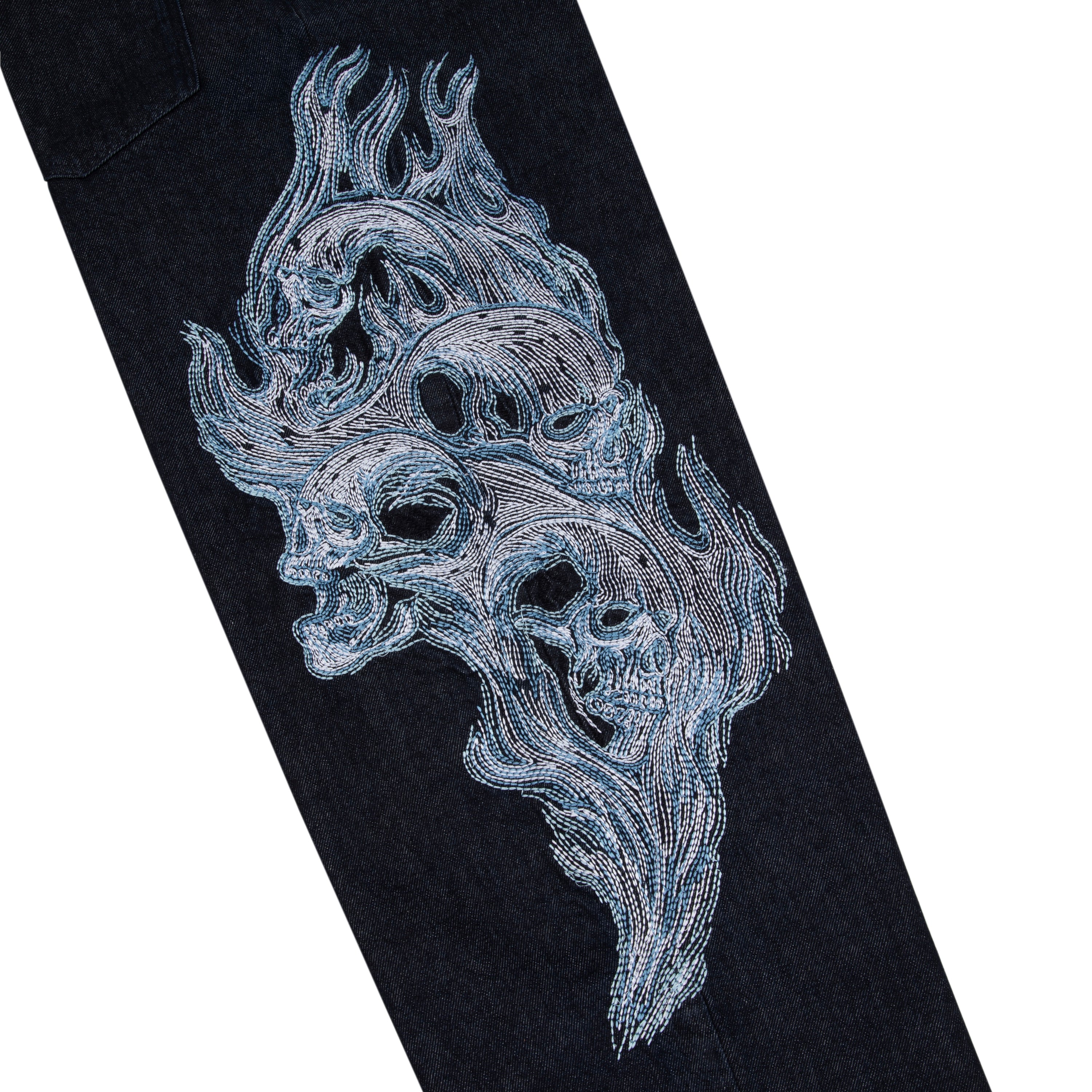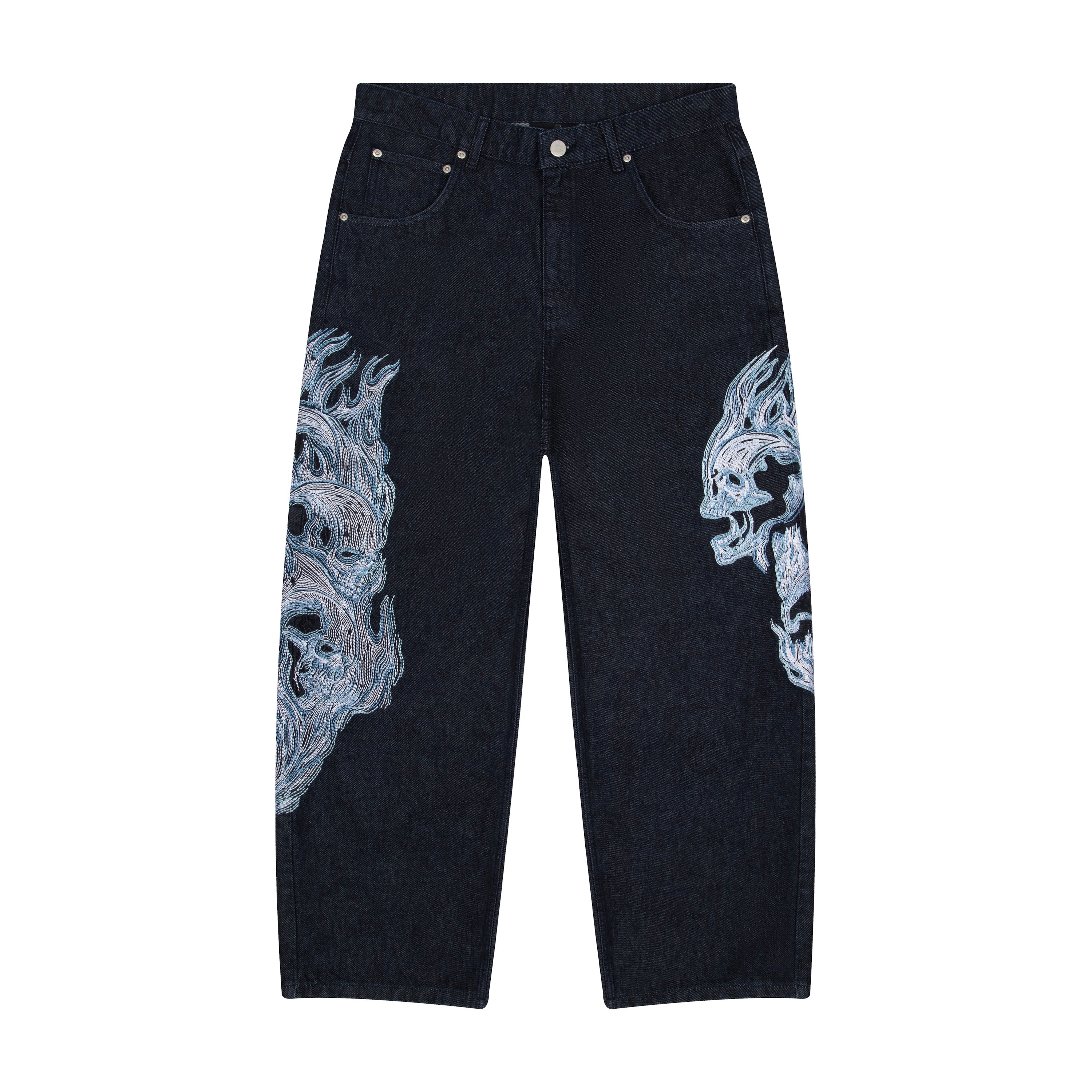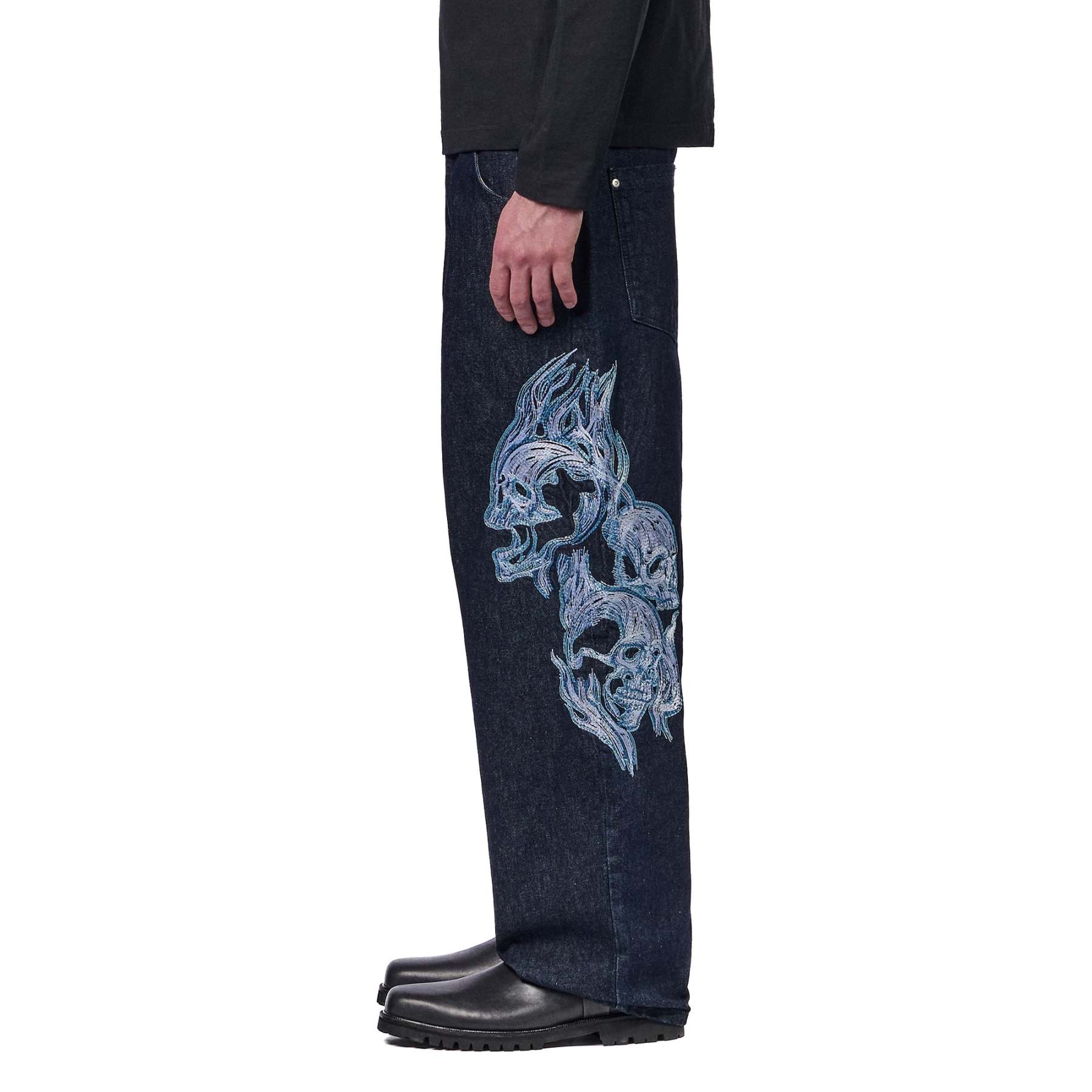 14,5oz denim / 100% cotton / embroidery on front and back / embossed printed leather patch / wash inside out / balloon fit / fits true to size