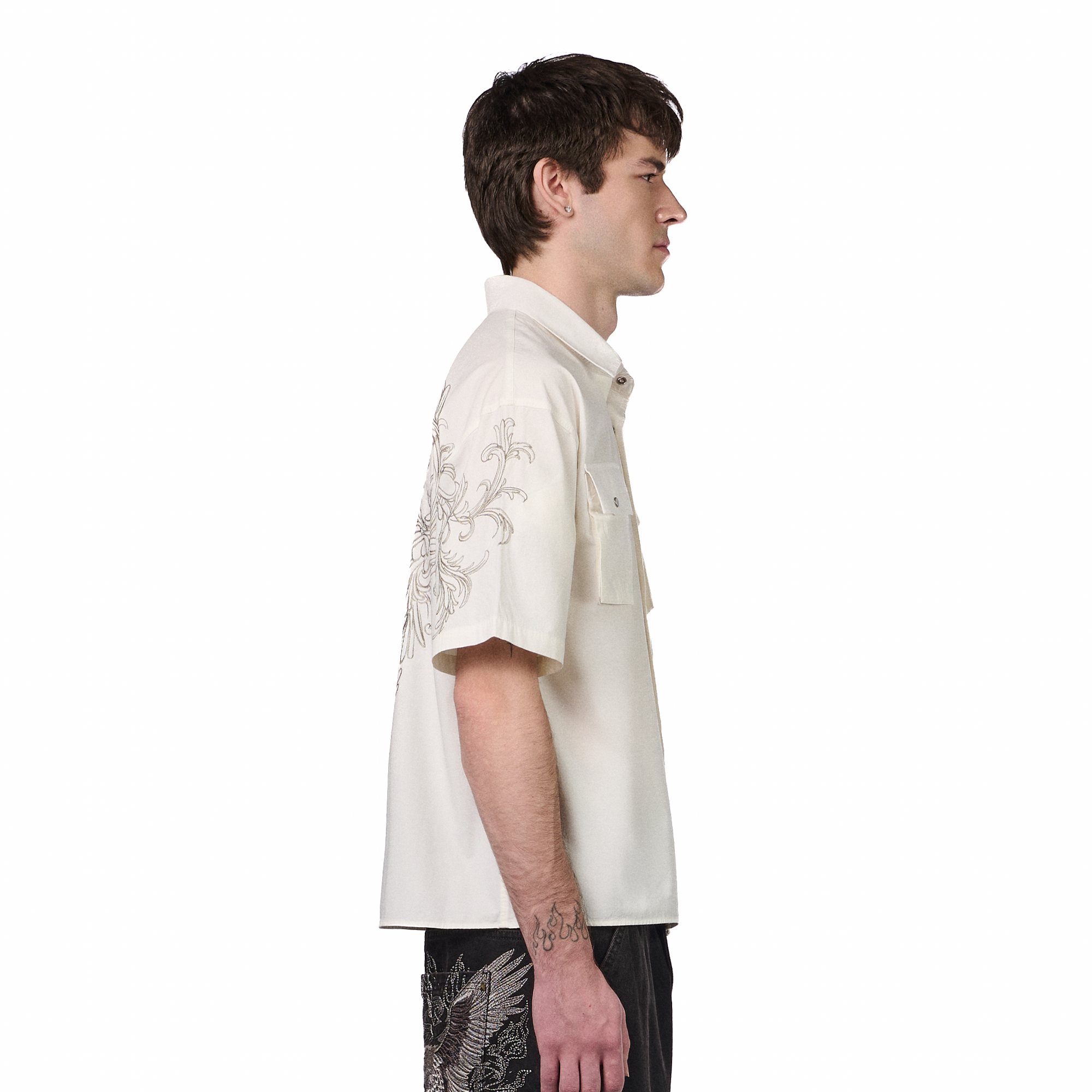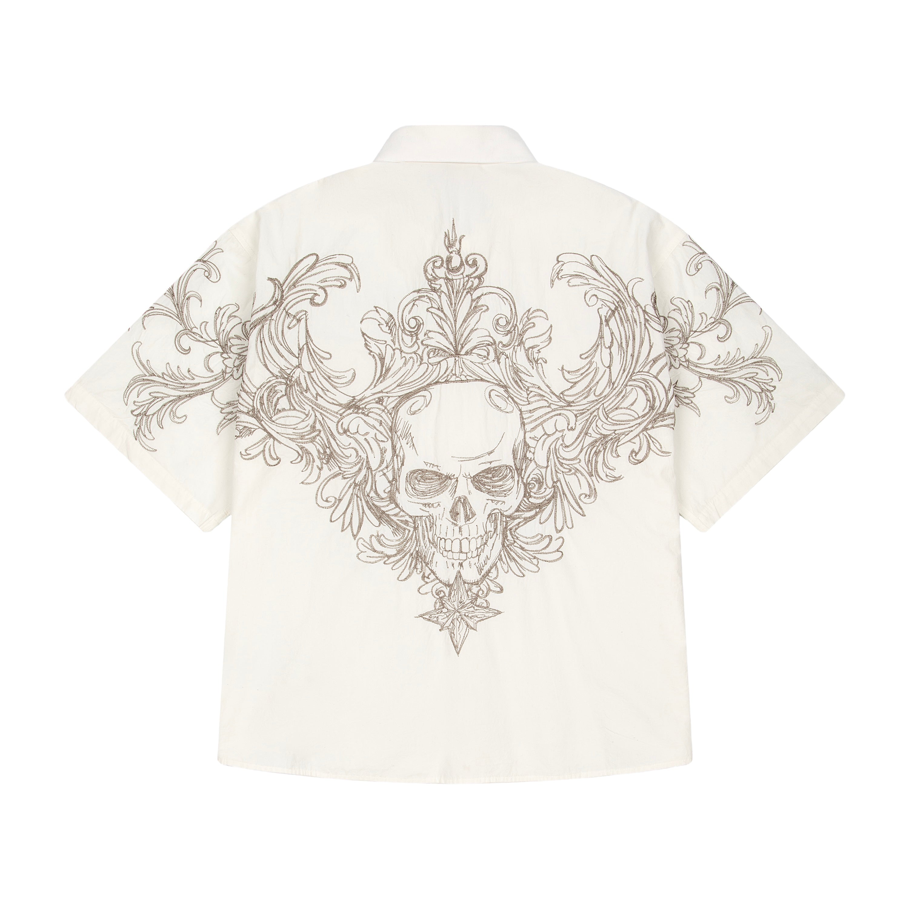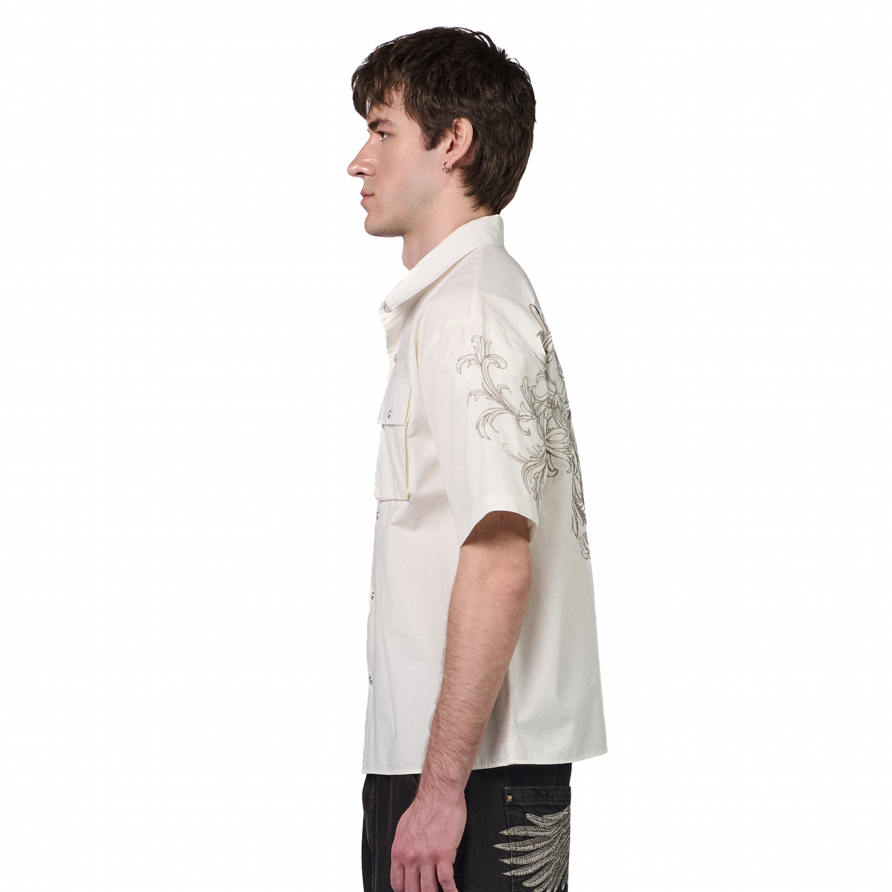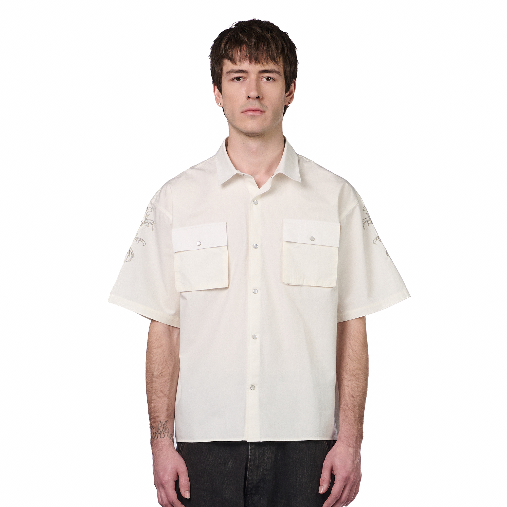 poplin fabric / 100% cotton / embroidery on back and sleeves / with buttons / curved hem / relaxed fit / fits true to size / shipping is delayed by up to 2 weeks