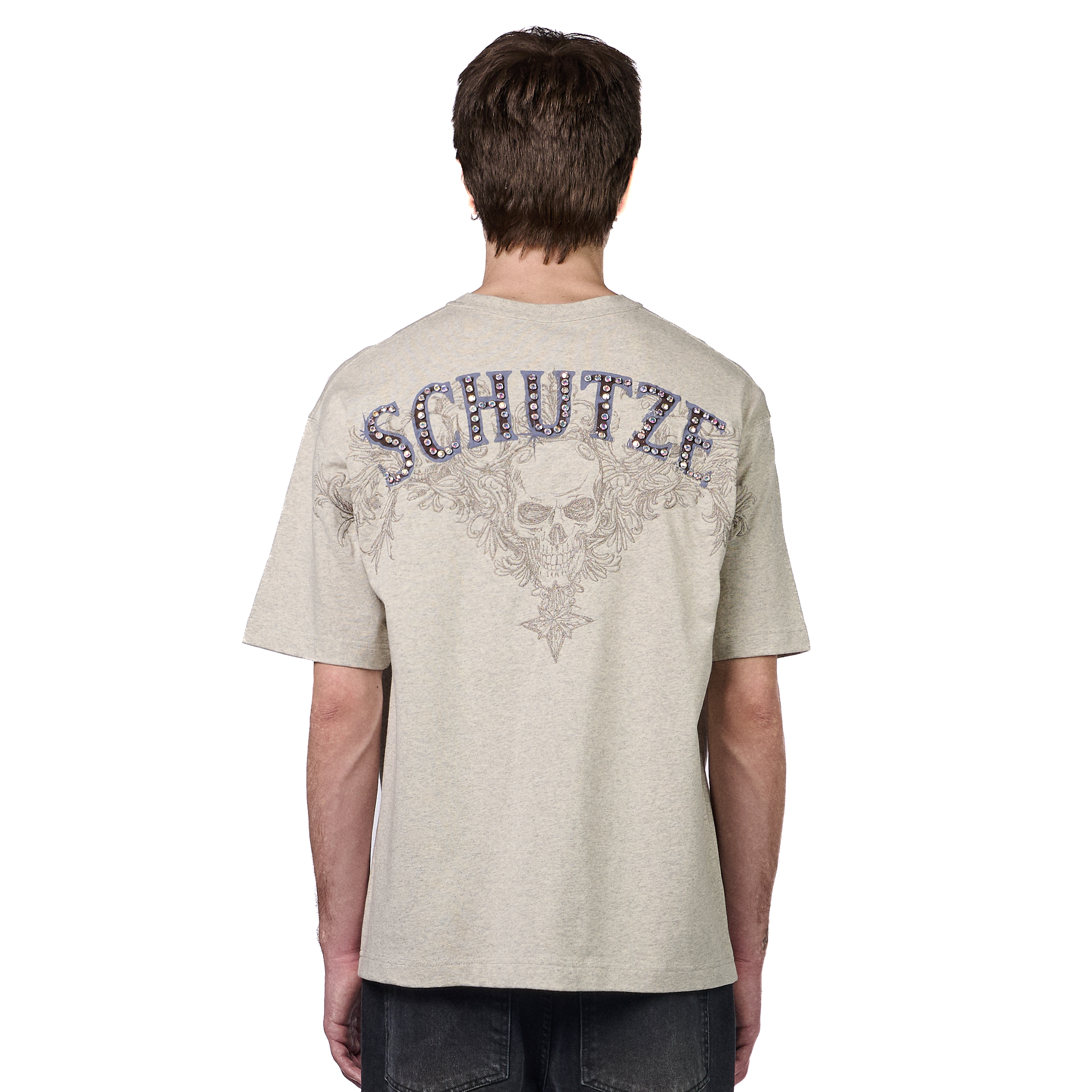260gsm fabric / 100% preshrunk cotton / print and embroidery on back / with rhinestone application on back / distressing on collar and hem / fits true to size