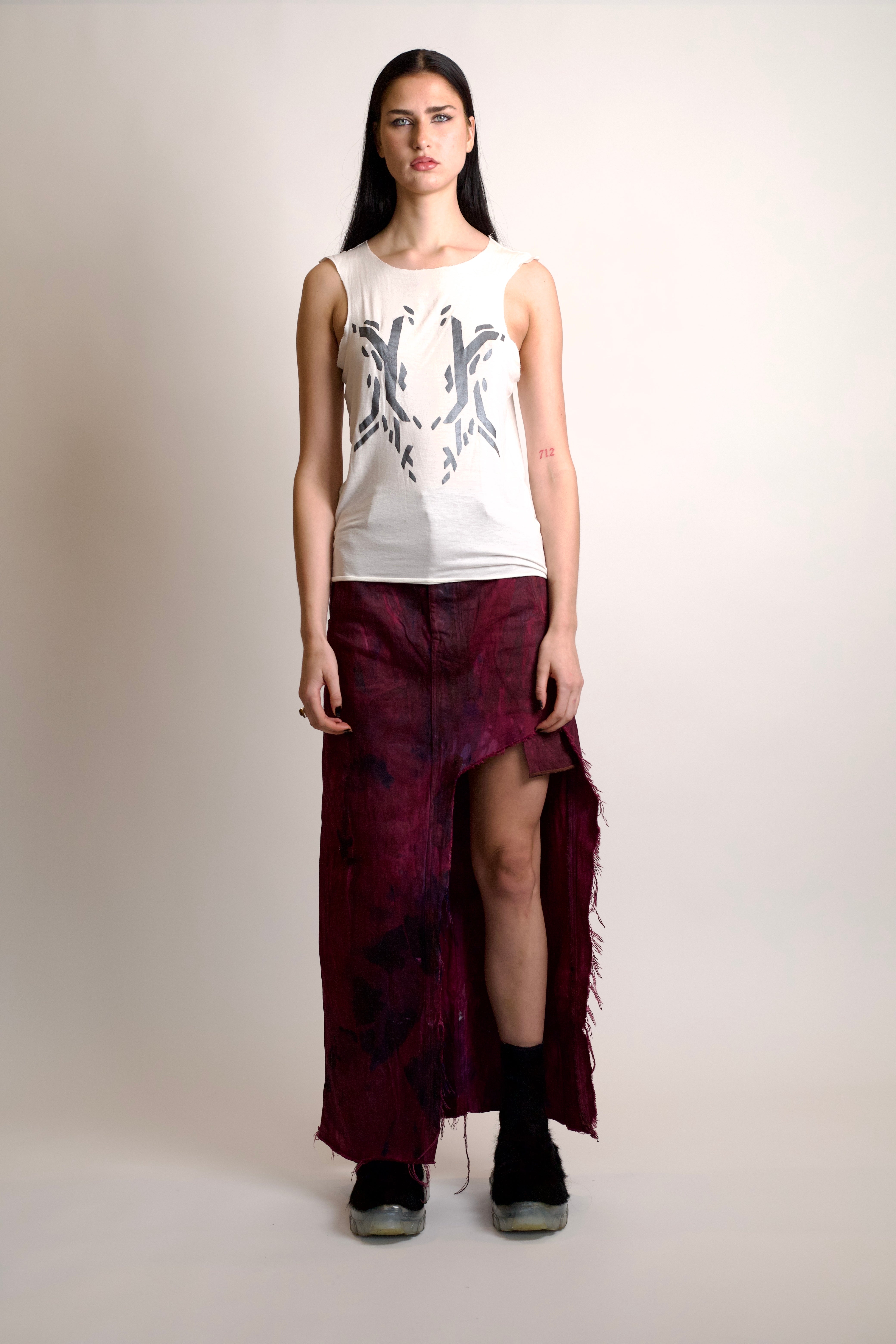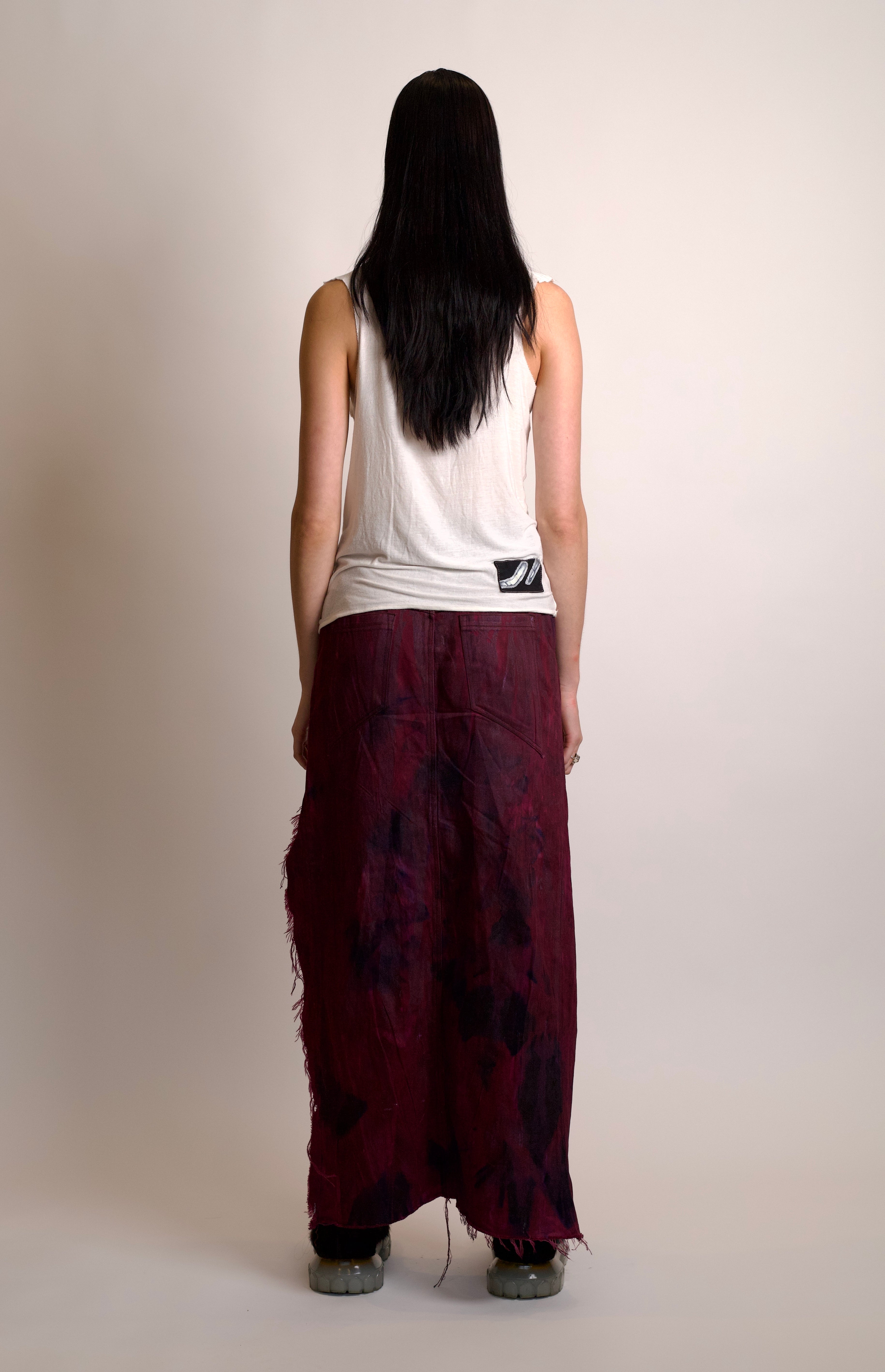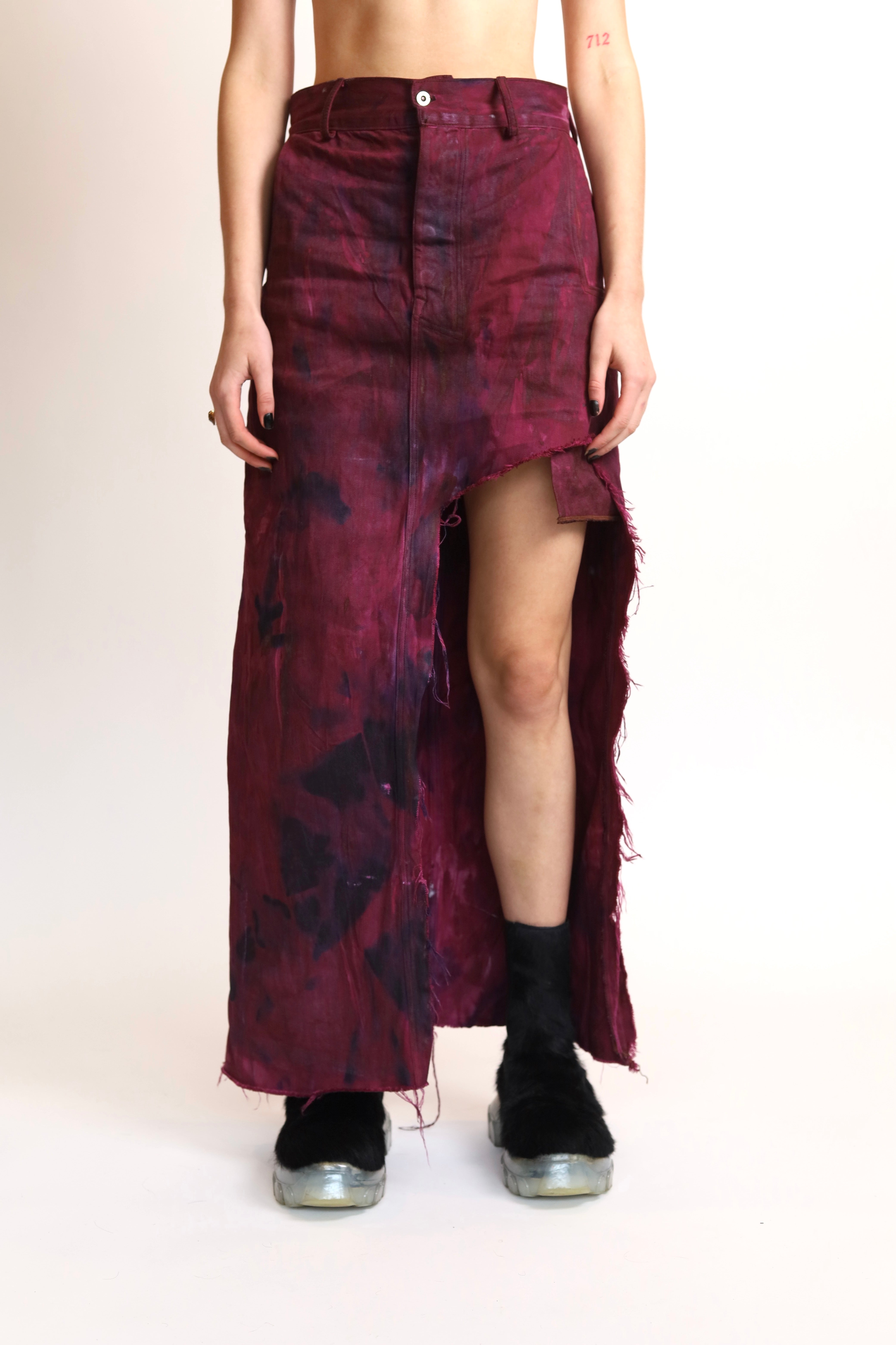 STERRE PEYTON OMEGA DUST ON LEG MAXI PART OF THE NU SZN COLLECTION.  THIS SKIRT IS LEG LENGTH SKIRT WITH AN EXPOSED LEG CUT.  THIS SKIRT INCLUDES 4 POCKETS AND FEATURES A TRADITIONAL BUTTON FLY. THIS SKIRT FEATURES THE SIGNATURE DUST DESIGN ALL OVER.  THIS SKIRT IS MADE FROM MEDIUM WEIGHT DENIM FOR DURABILITY AND COMFORTABILITY.