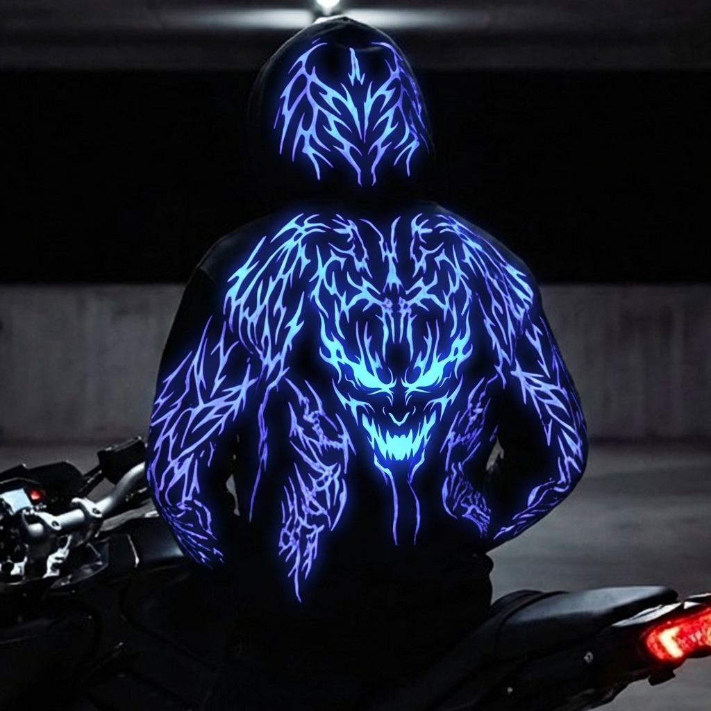 LED Light-Up Devil Hoodie Glow-in-the-Dark Reflective Cotton Blend Sweatshirt for Men