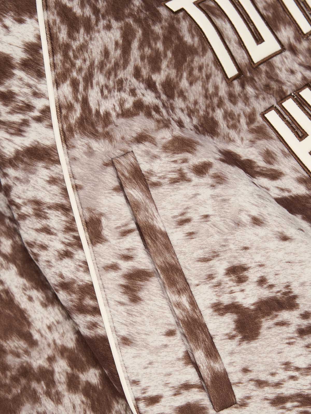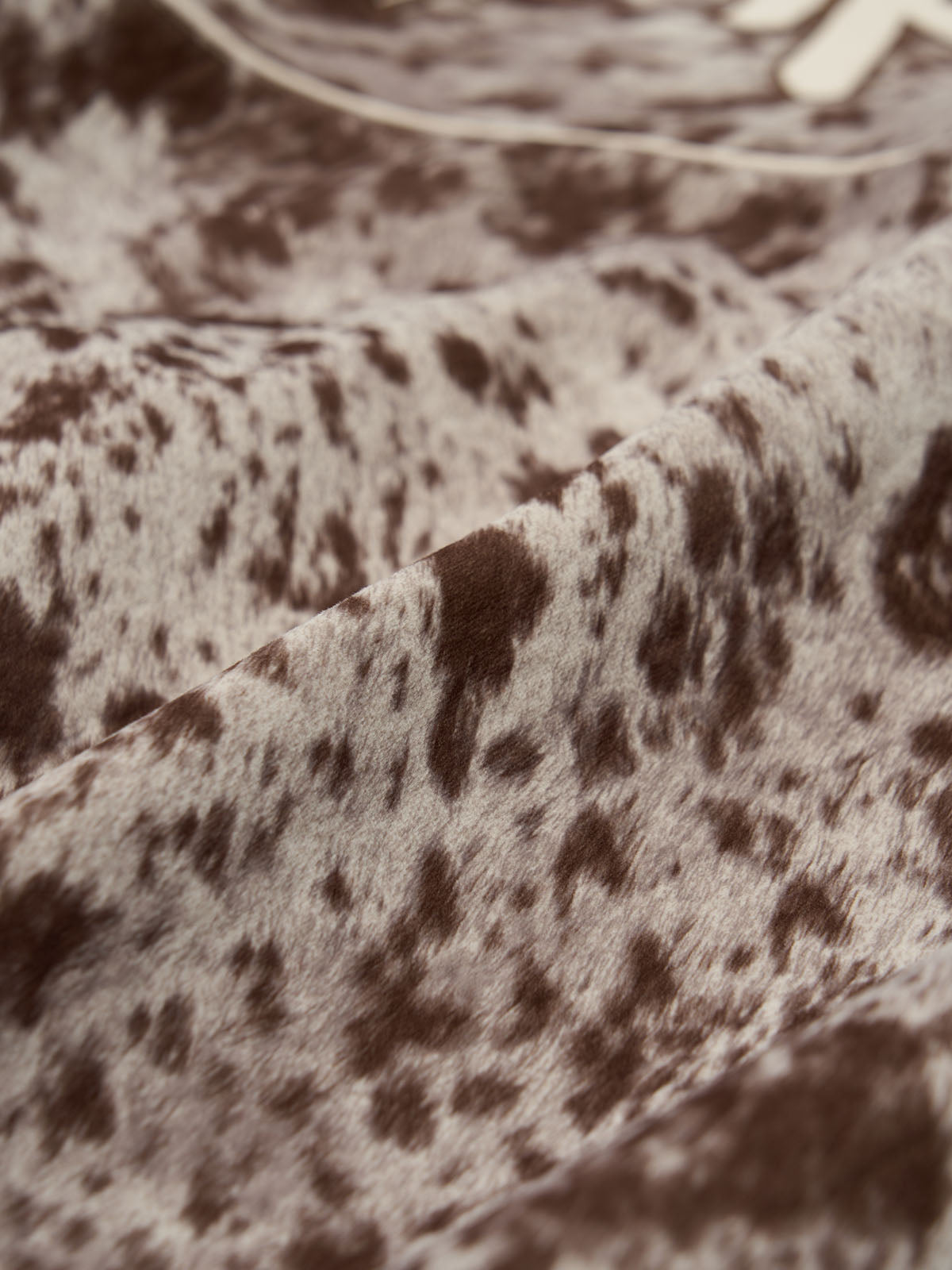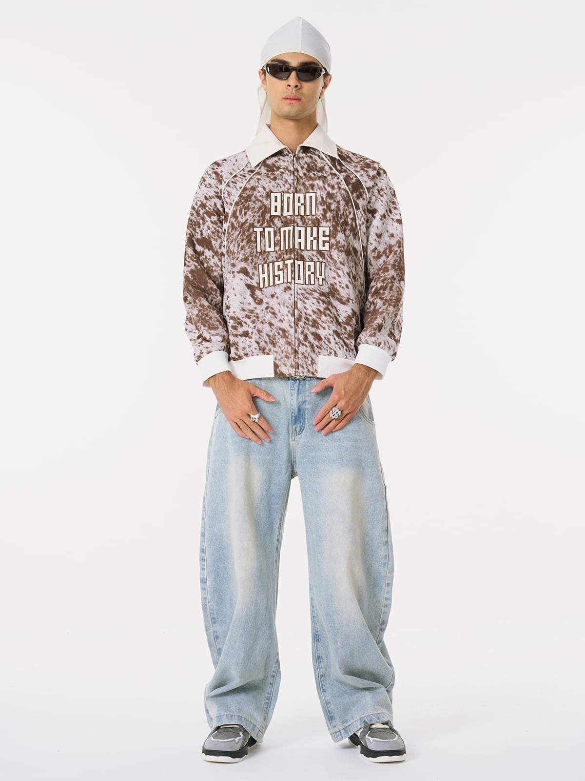 • Design Elements: Bold "Born to Make History" text print, cow print pattern, relaxed fit jeans