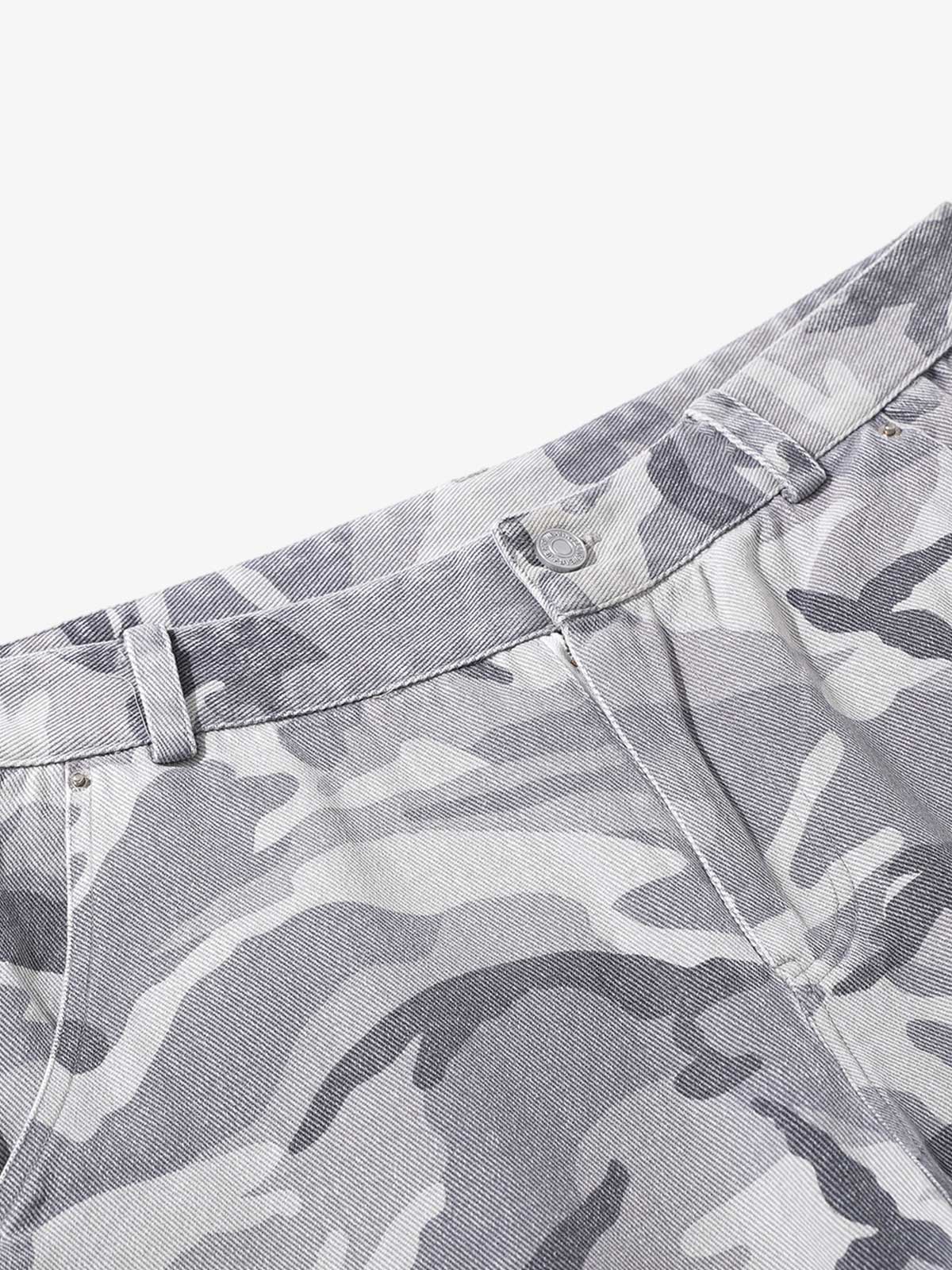 Snow Camouflage Machete Wide-Leg Cargo Barrel Pants - 2548