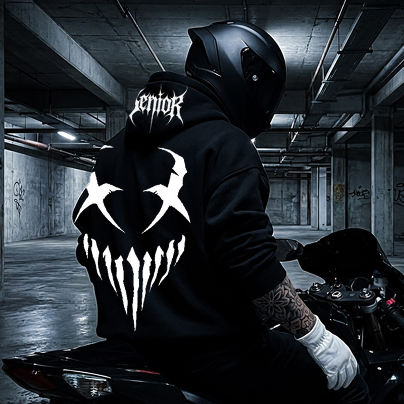 Cotton Blend Blue Tribal Dragon Print Hoodie for Men Streetwear Fashion Sweatshirt with Zipper and Pockets
