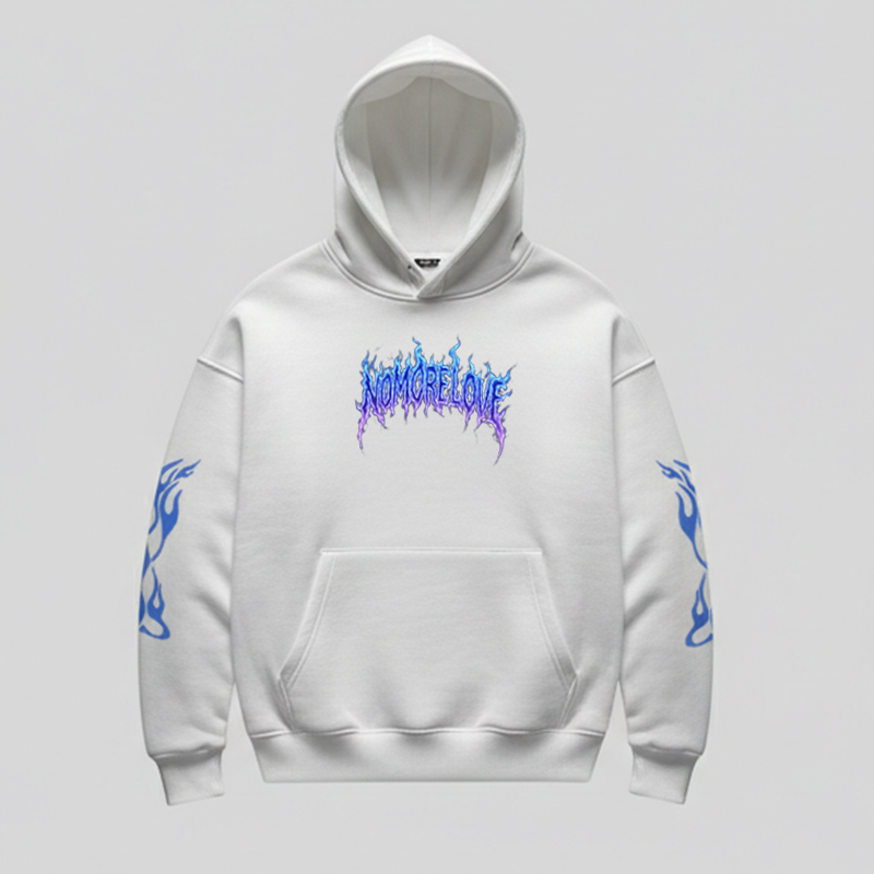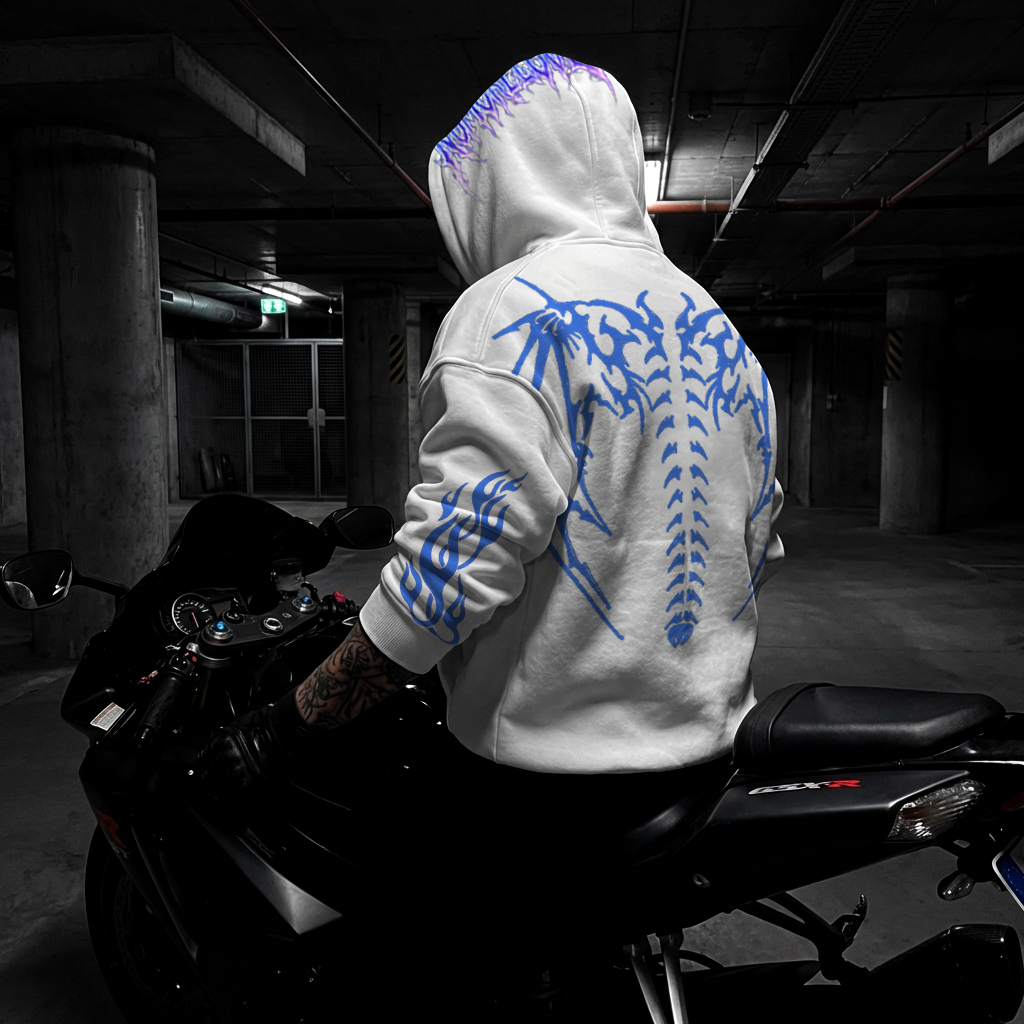 Cotton Blend Blue Tribal Dragon Print Hoodie for Men Streetwear Fashion Sweatshirt with Zipper and Pockets