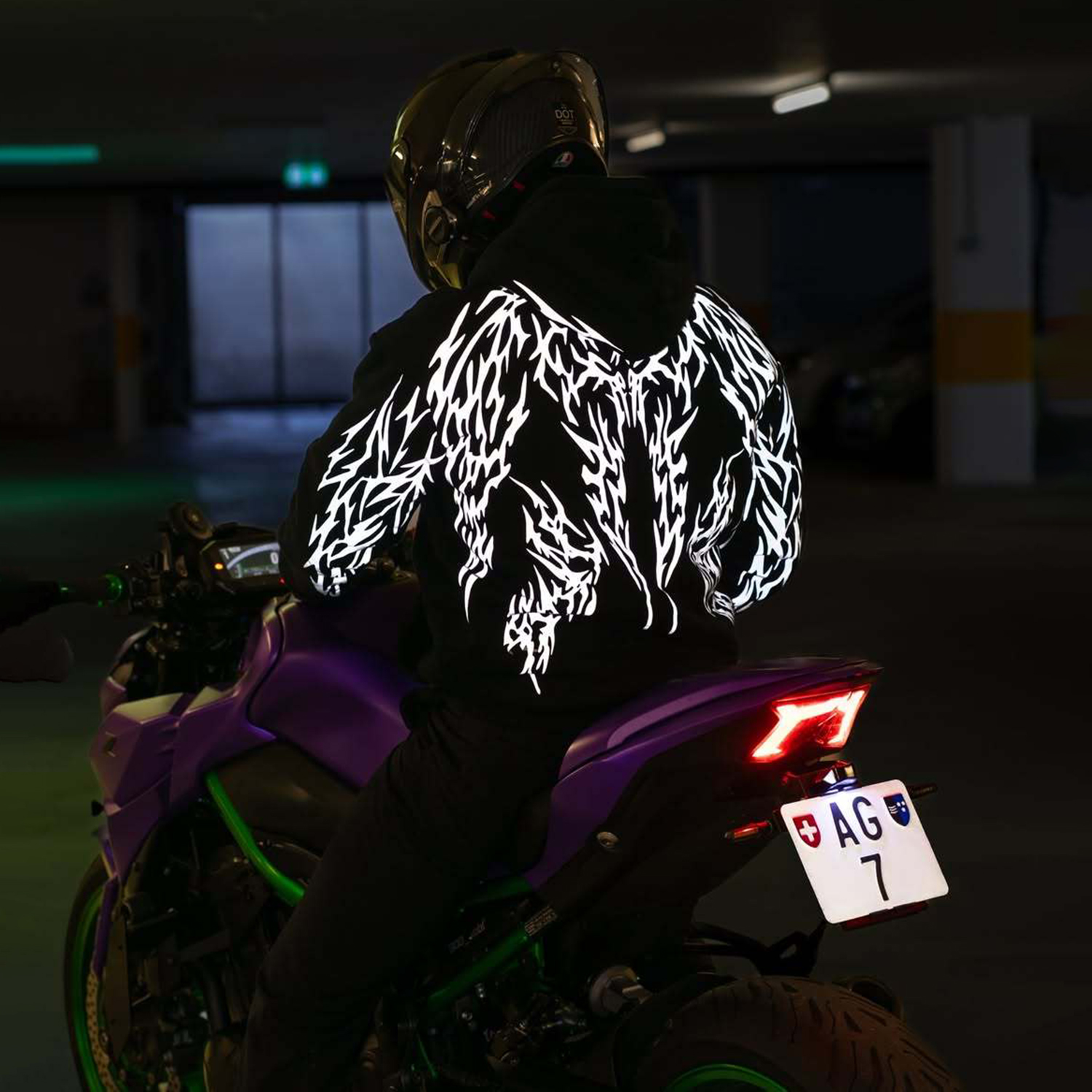 High-Performance Motorcycle Riding Jacket with Reflective Flame Design