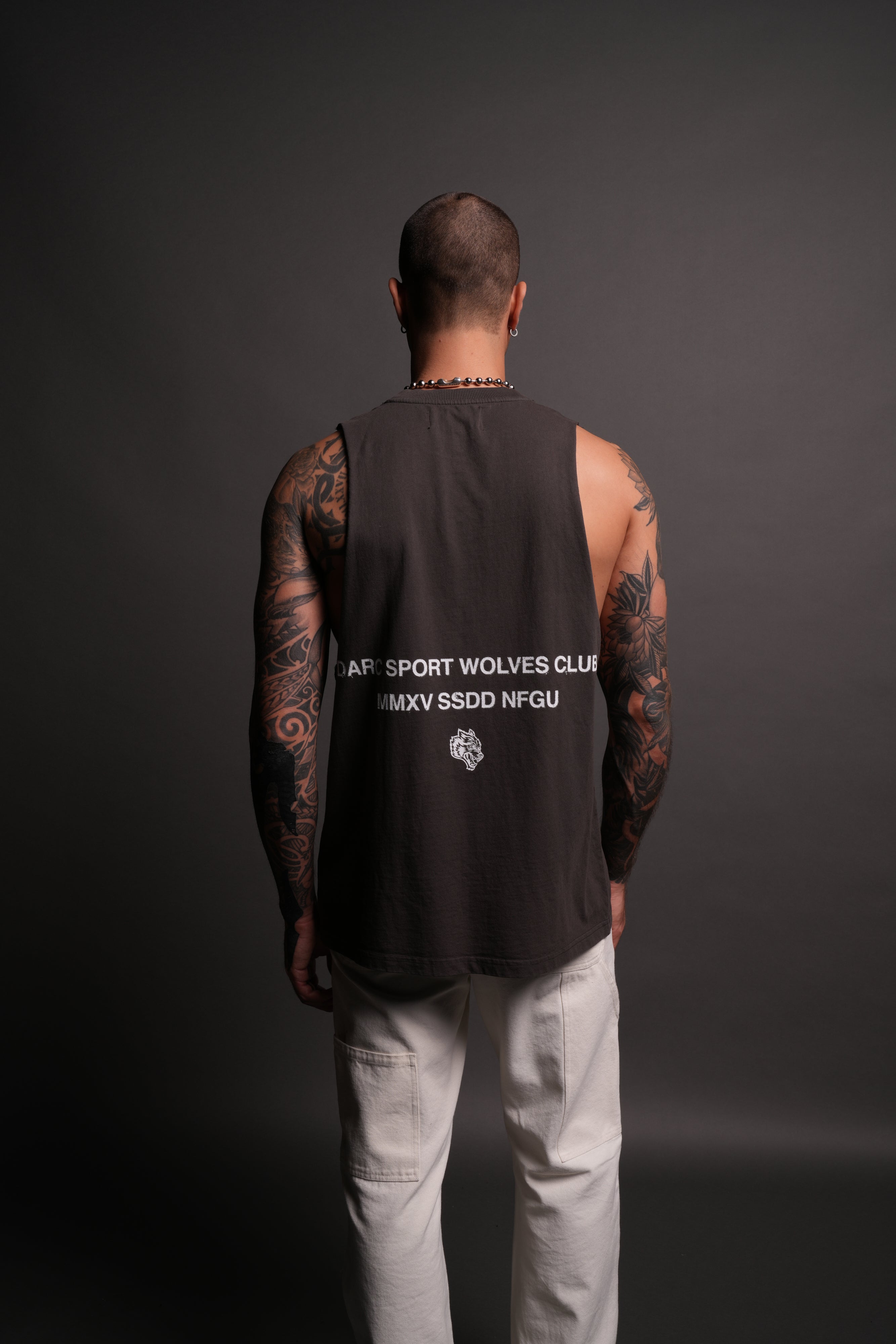 Corazon Sagrado Grunge "Tommy" Muscle Tee in Wolf Gray