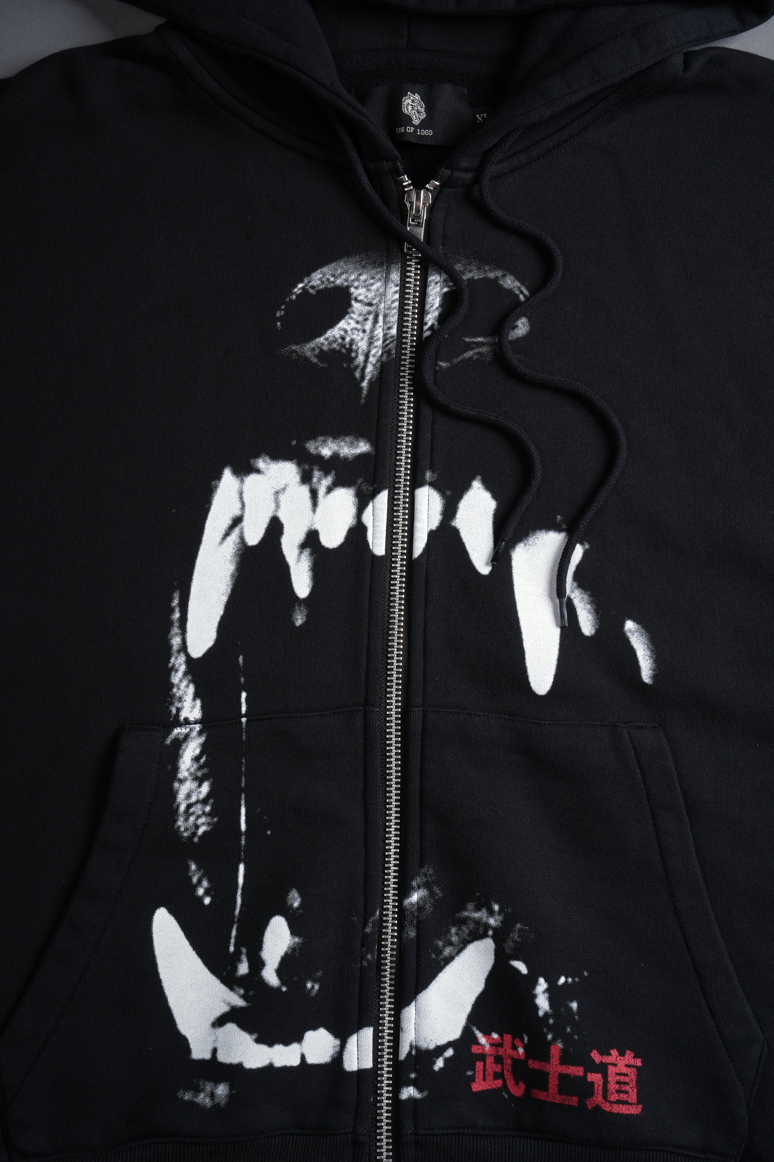Blood Thirsty Kanji "Creed" Cap Zip Hoodie in Black