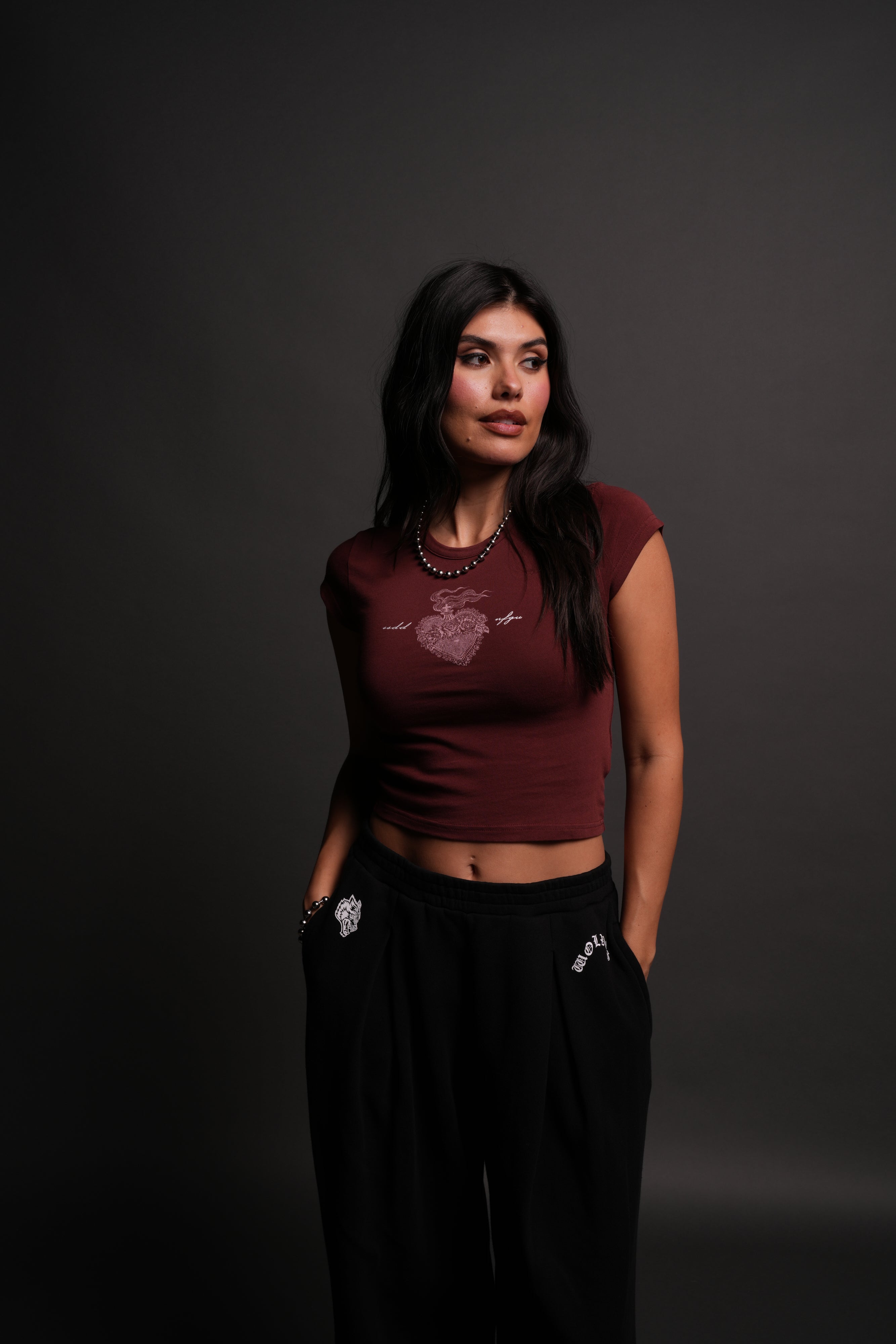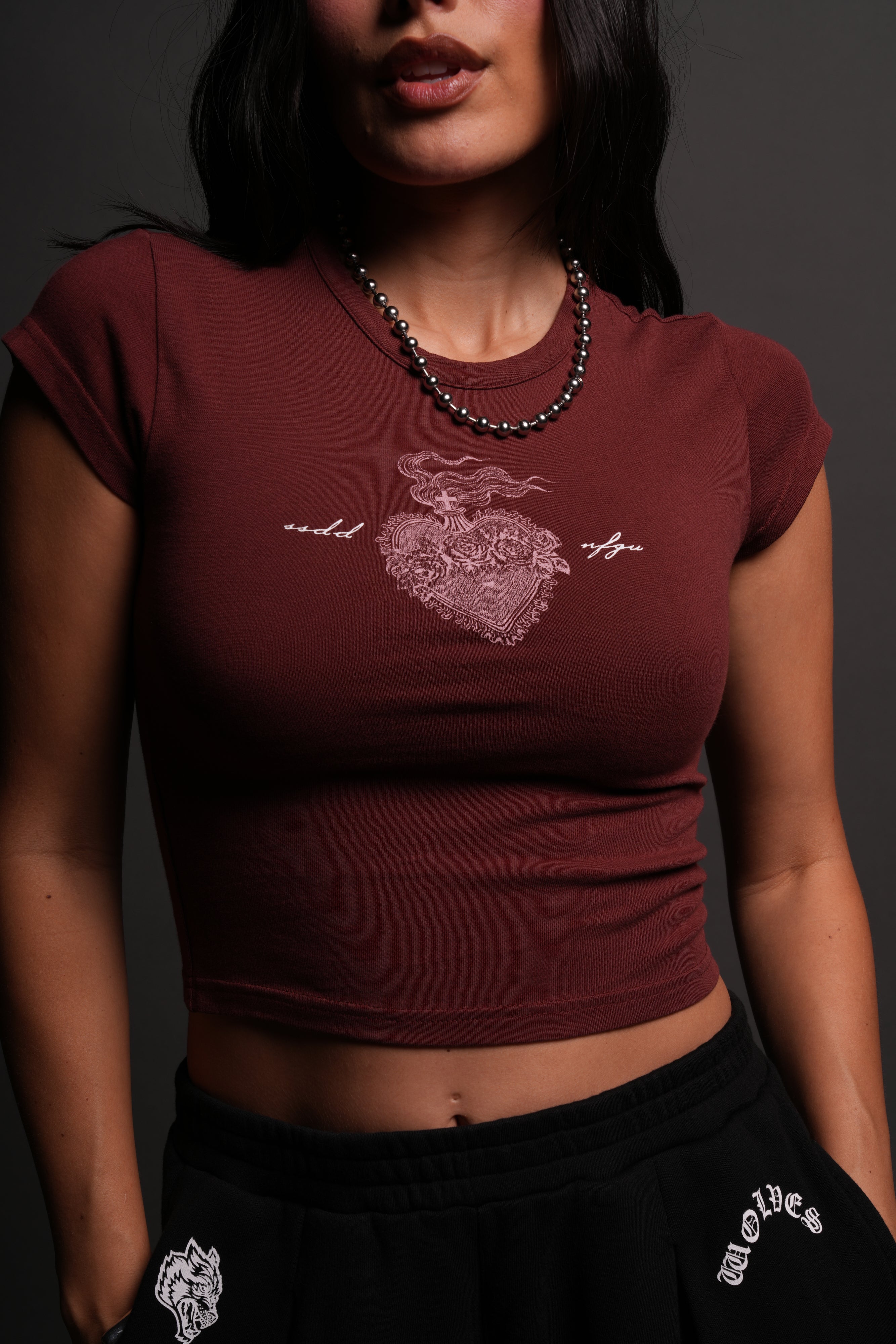 Heart of Flame "Baby" Tee in Oxblood