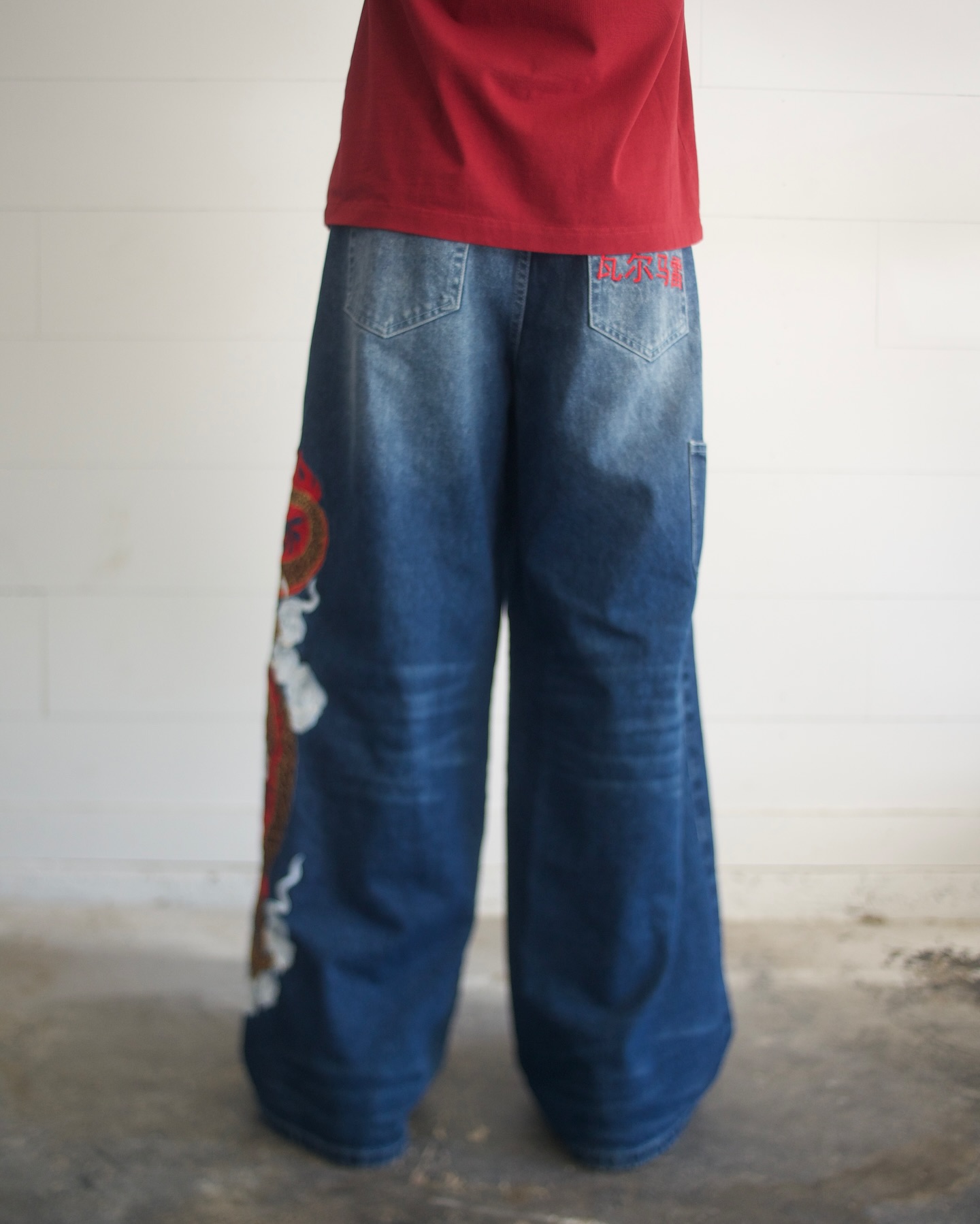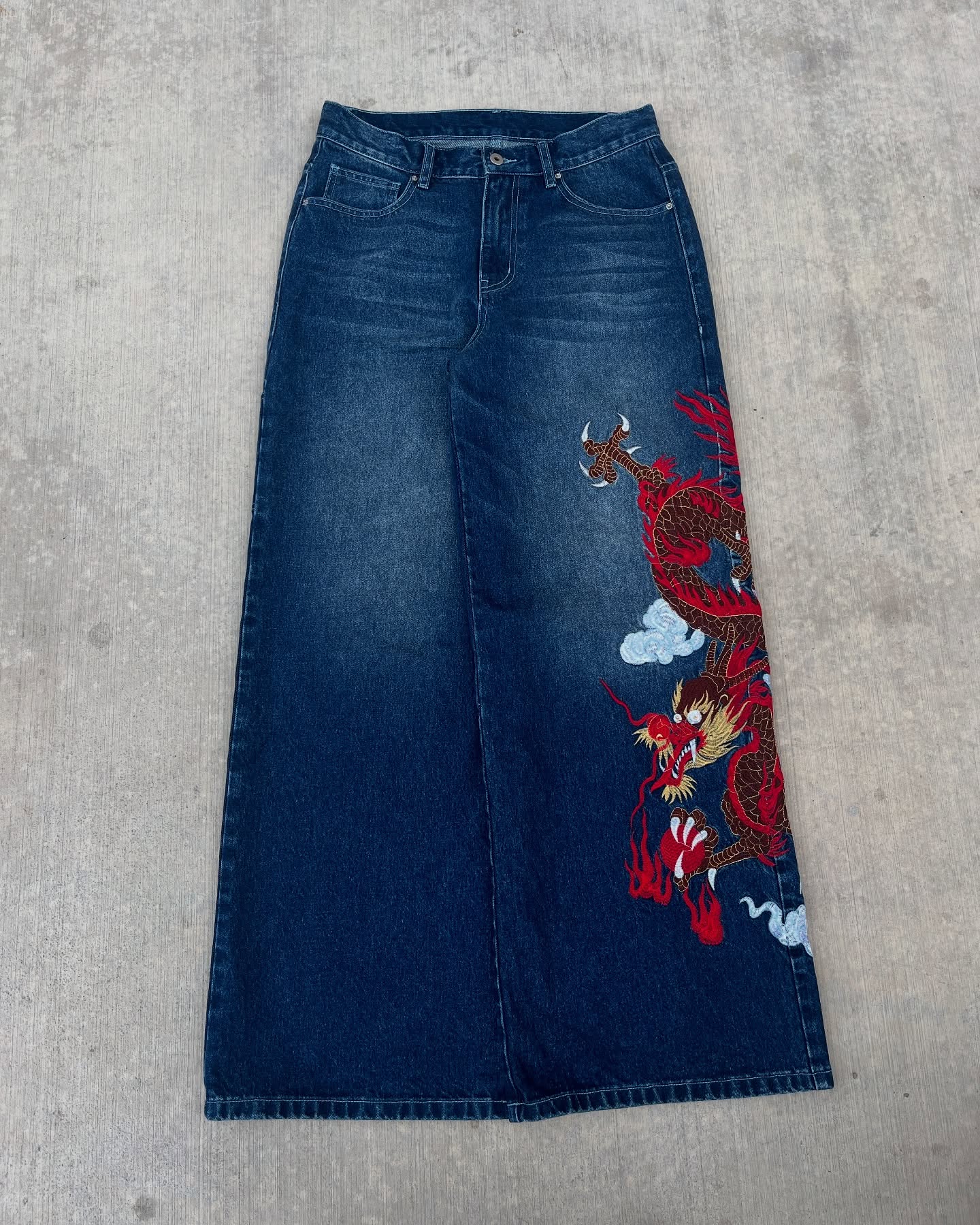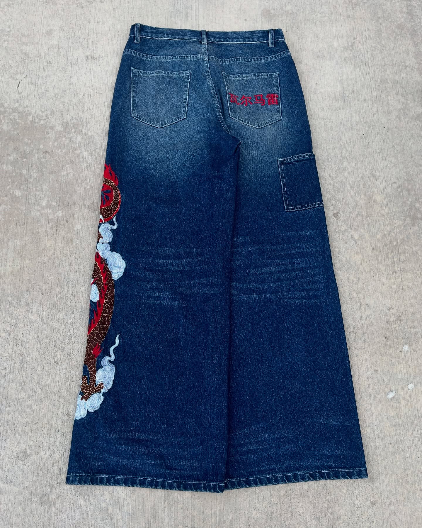 Navy Dragon Baggy Jeans