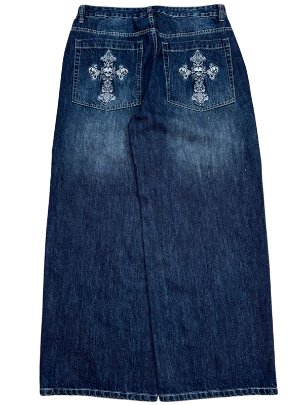 Dark Wash Faded Skull Cross GLOE Jeans