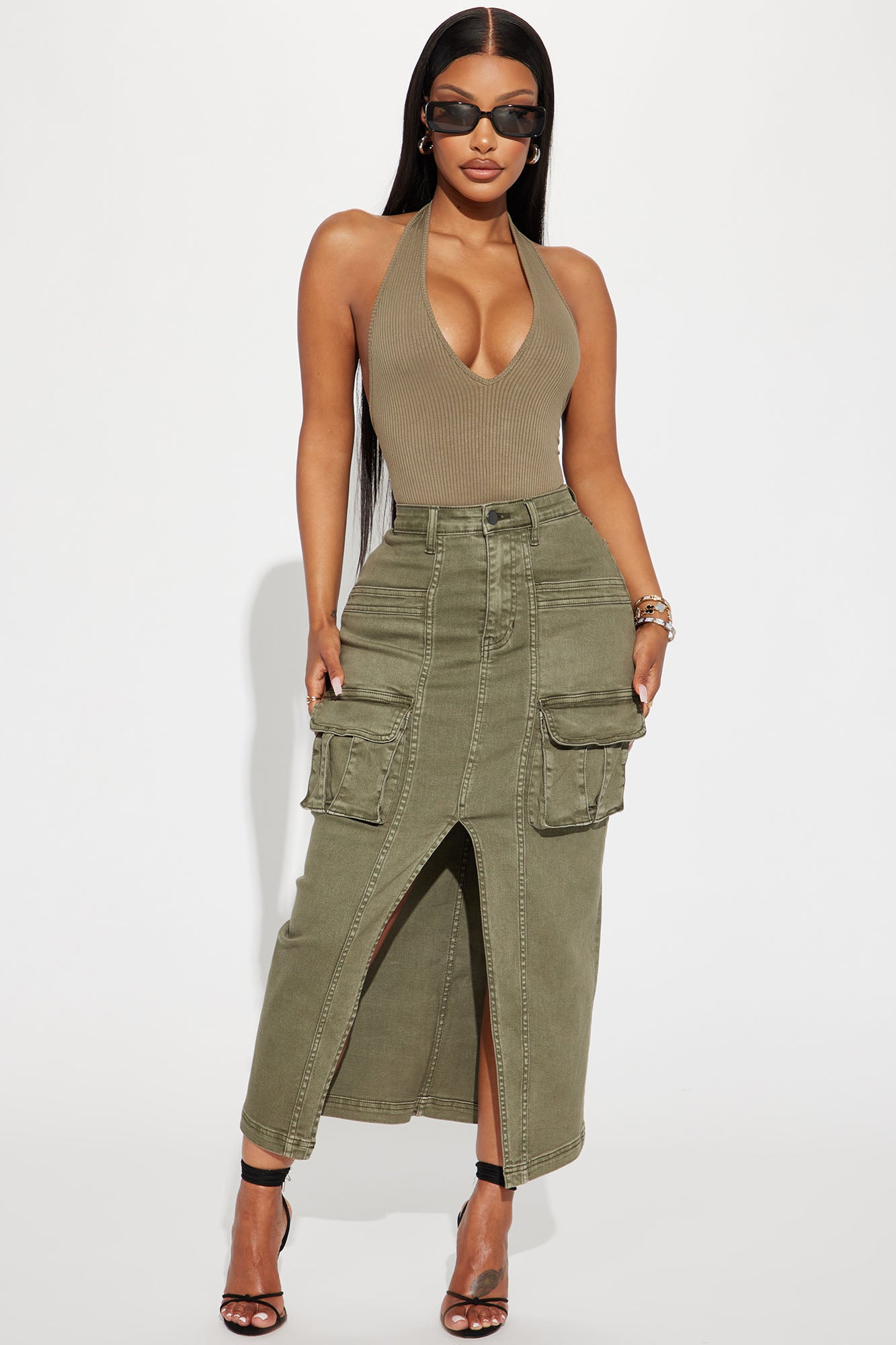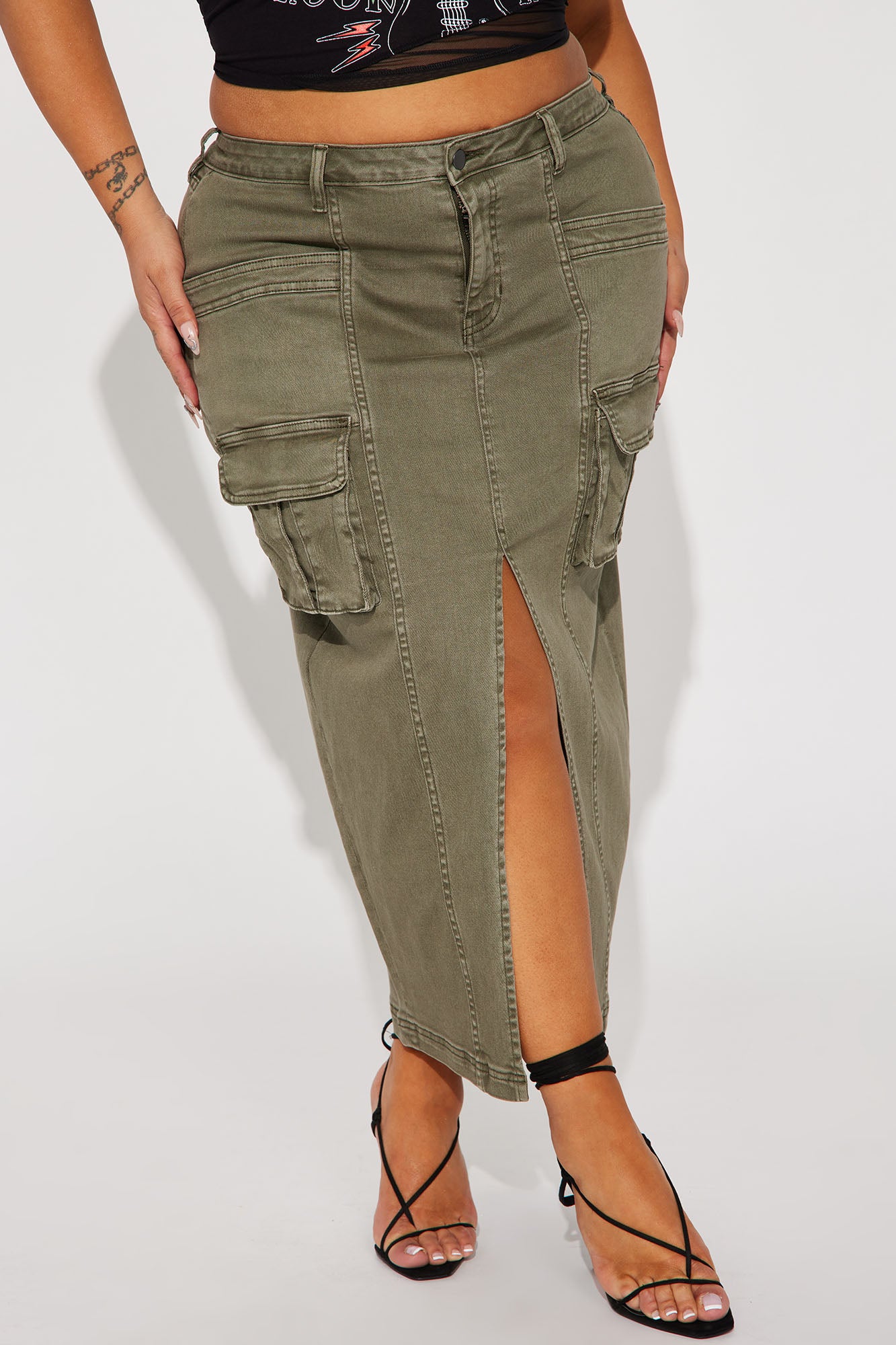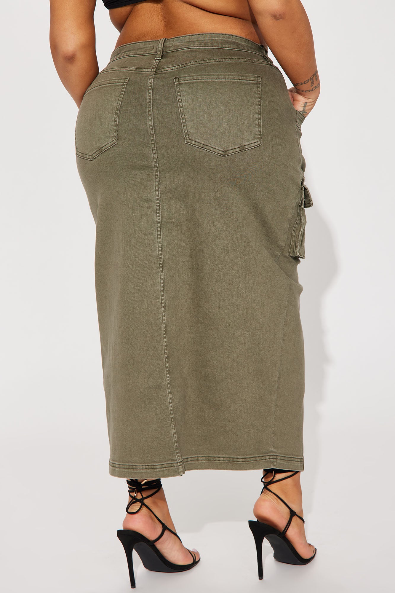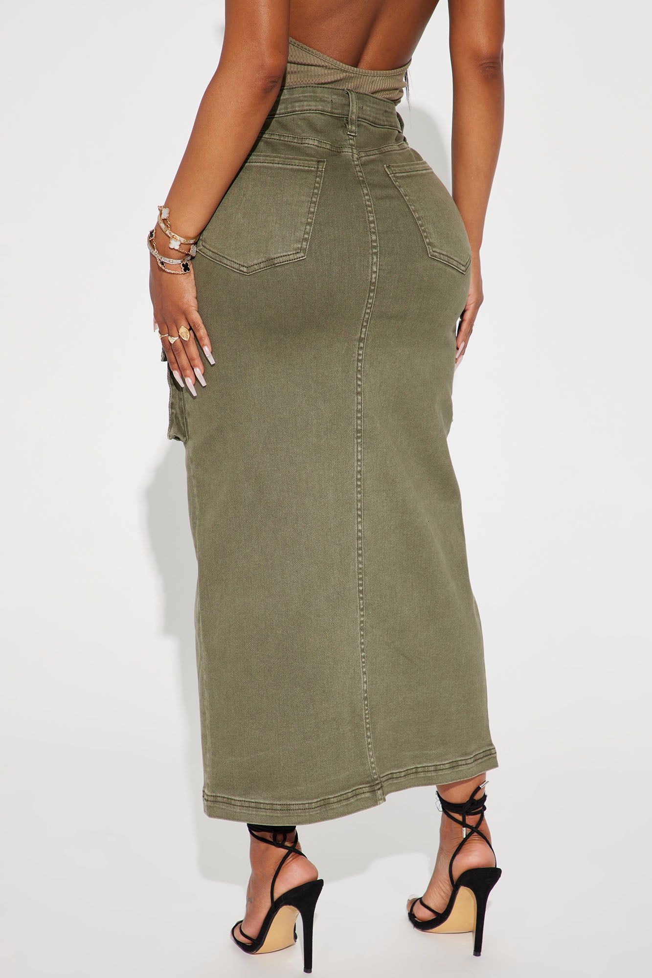 Get In Line Cargo Maxi Skirt - Olive