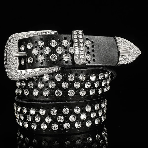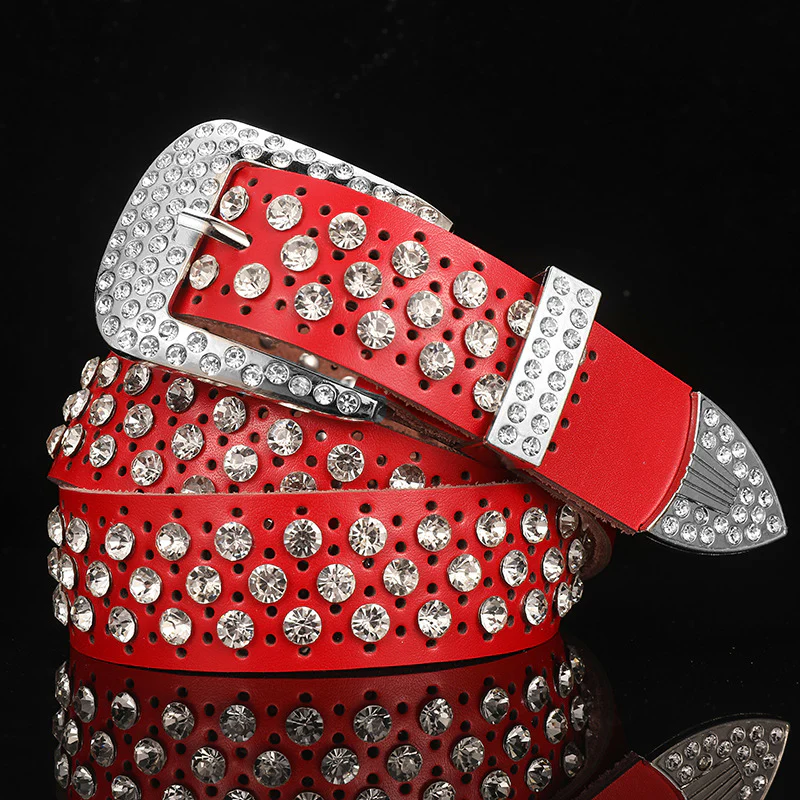 Leather Crystal Rhinestone Belt