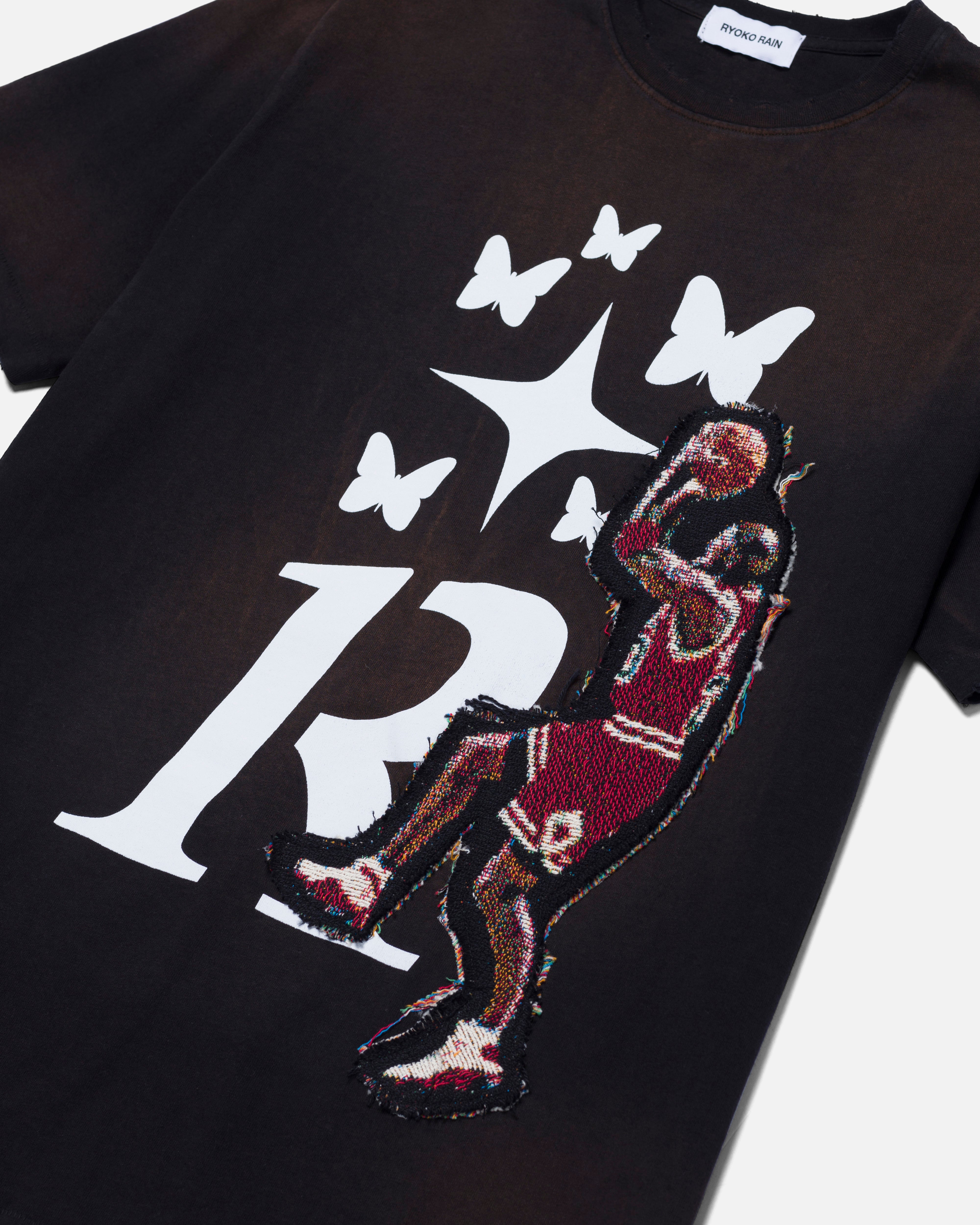 100% Cotton. Ryoko Rain x inwayoveryourhead copper faded black tee with sewn tapestry and custom front screen printed design. Potassium sprayed to give a copper faded look. Made in Los Angeles, CA.