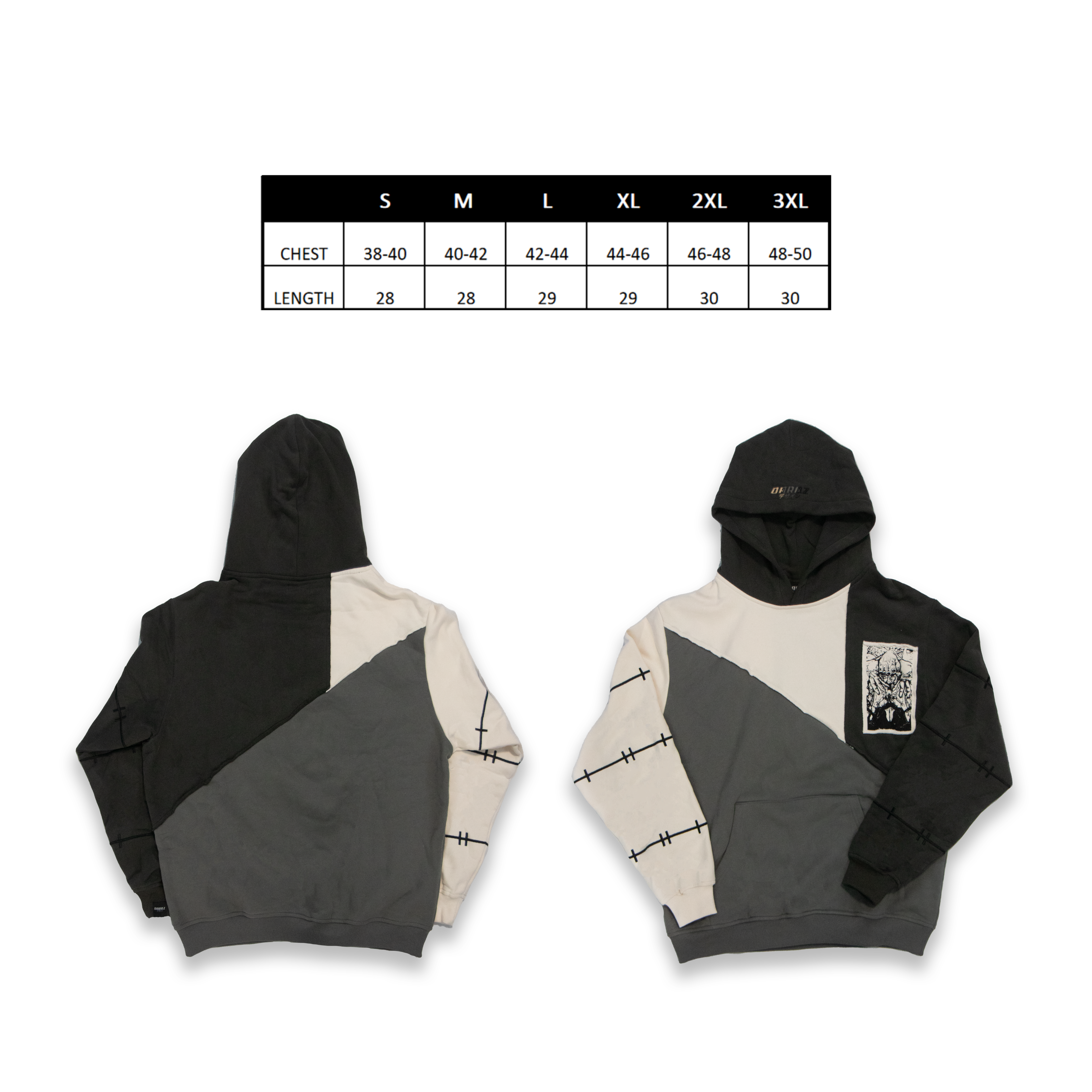 Cust and sewnArms/hood embroideredStitched front patch