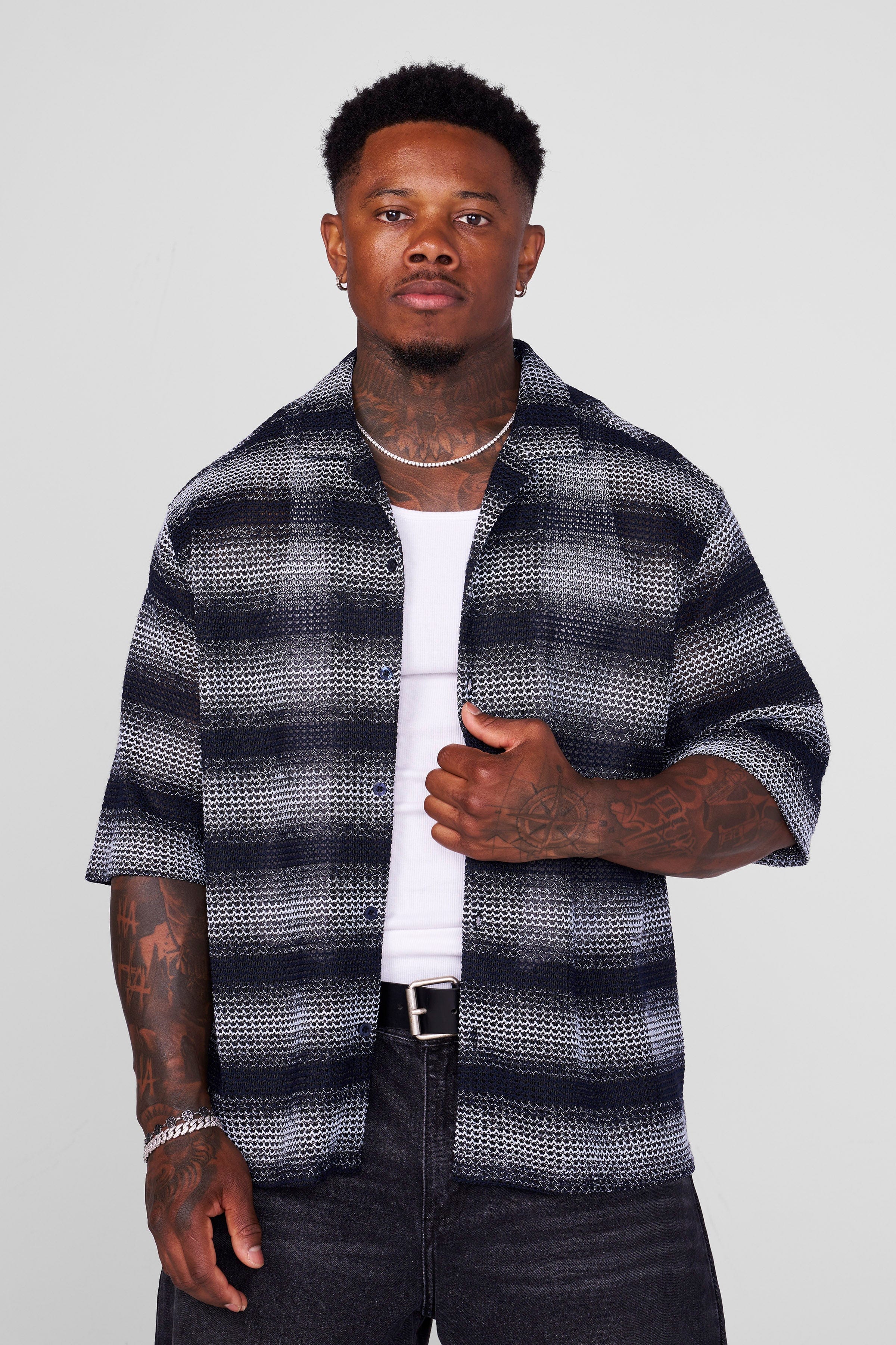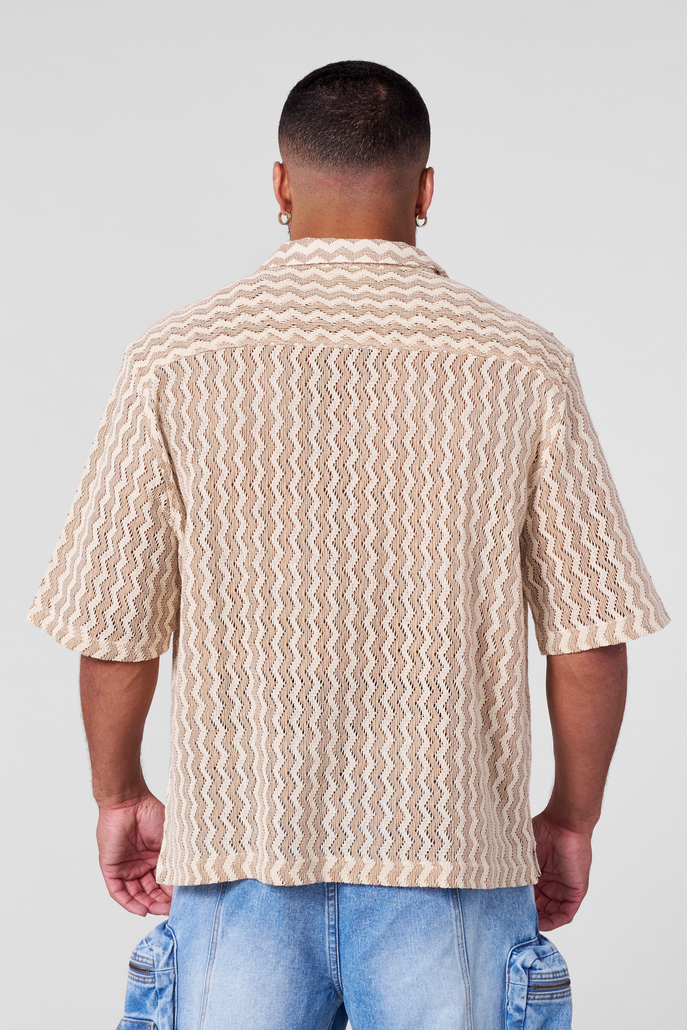 DESIGN: Turn up the heat with the Cabana Button-Up — the ultimate summer essential for day parties or nighttime vibes. Designed with a breezy, open-knit fabric and a bold wavy stripe pattern, this button-up delivers a laid-back yet elevated look.