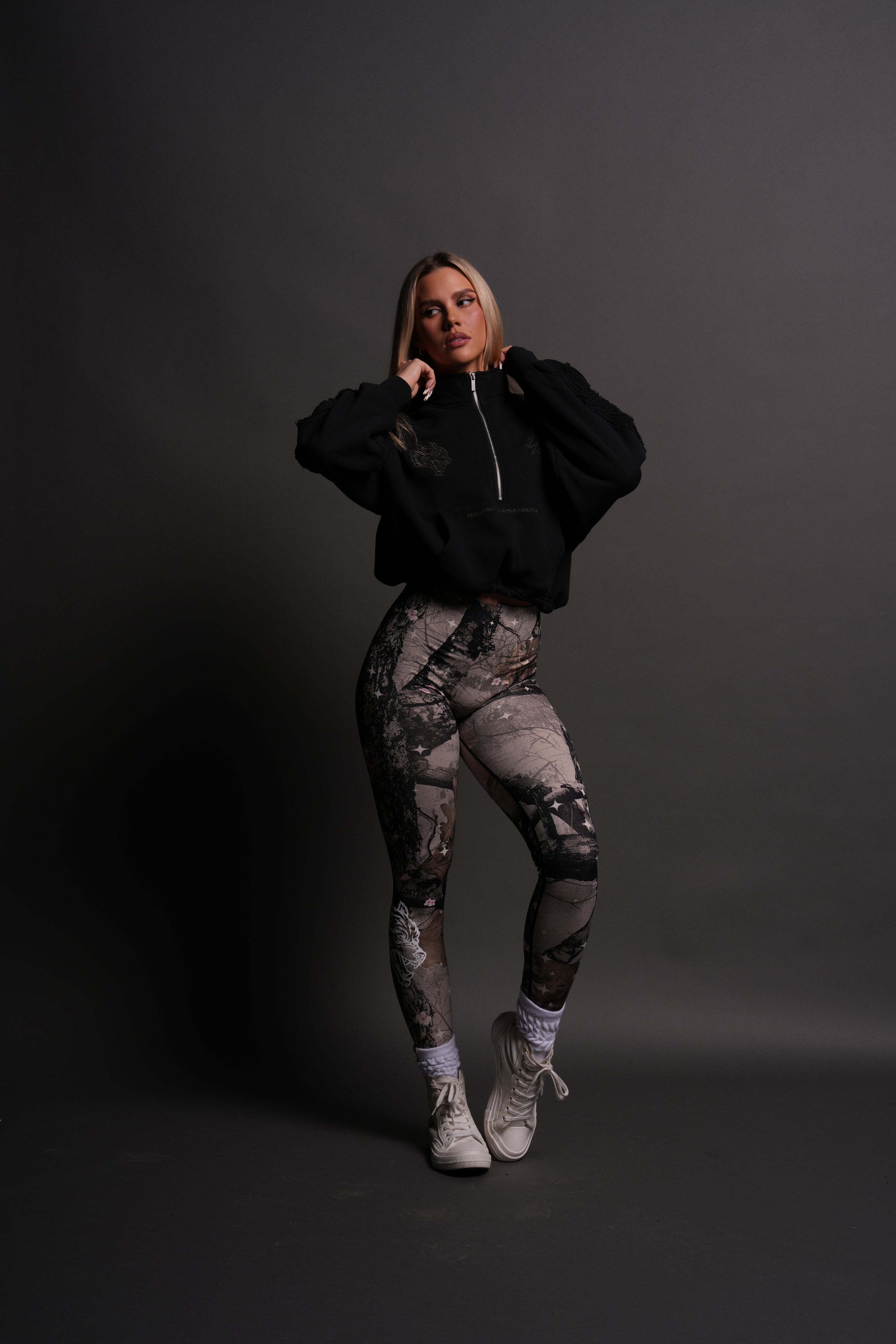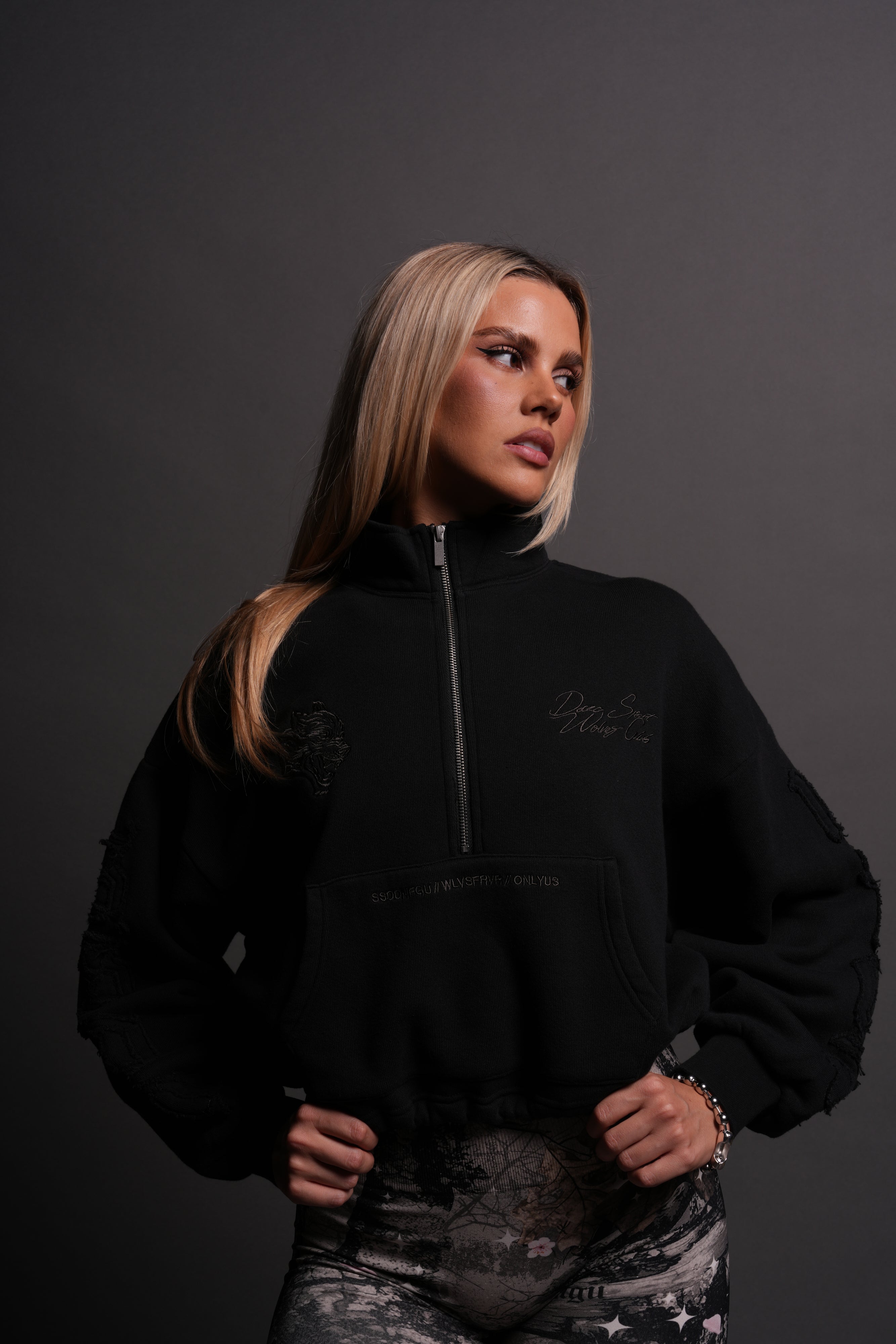 Our Mantra Appliqué Oversized "Everson" Mockneck in Black