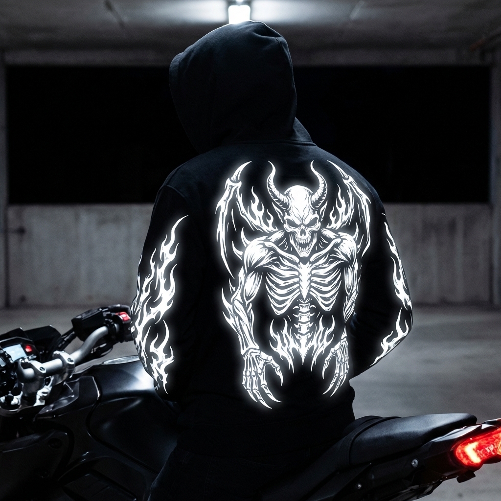 LED Light-Up Devil Hoodie Glow-in-the-Dark Reflective Cotton Blend Sweatshirt for Men
