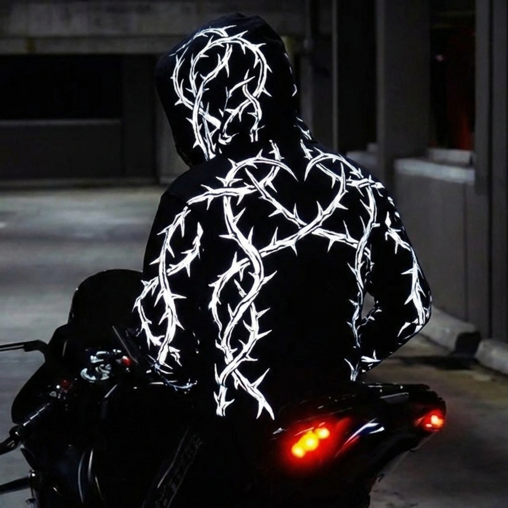 LED Light-Up Devil Hoodie Glow-in-the-Dark Reflective Cotton Blend Sweatshirt for Men