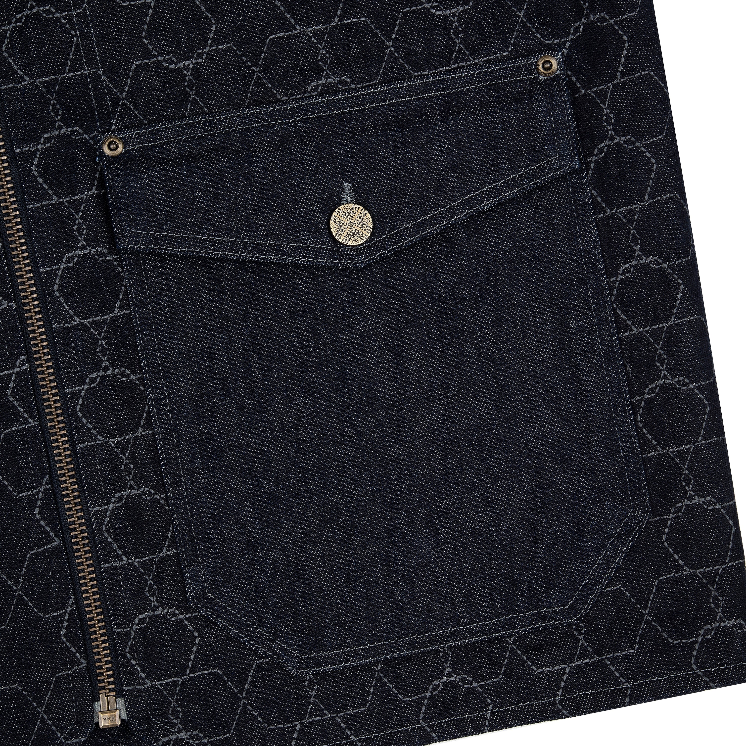 14,5oz denim / 100% cotton / fully capitone patterned embroidered denim / embroidery on back / custom buttons / fits true to size