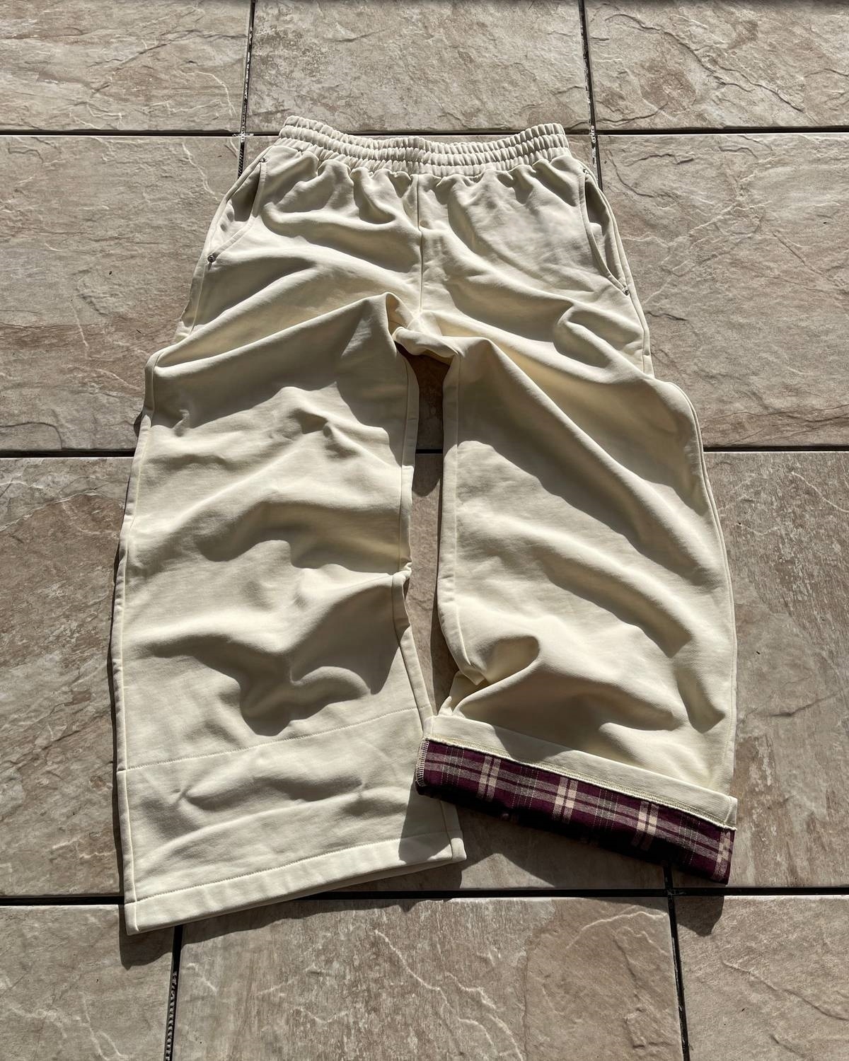 - Plaid in pockets and inside near ankle.