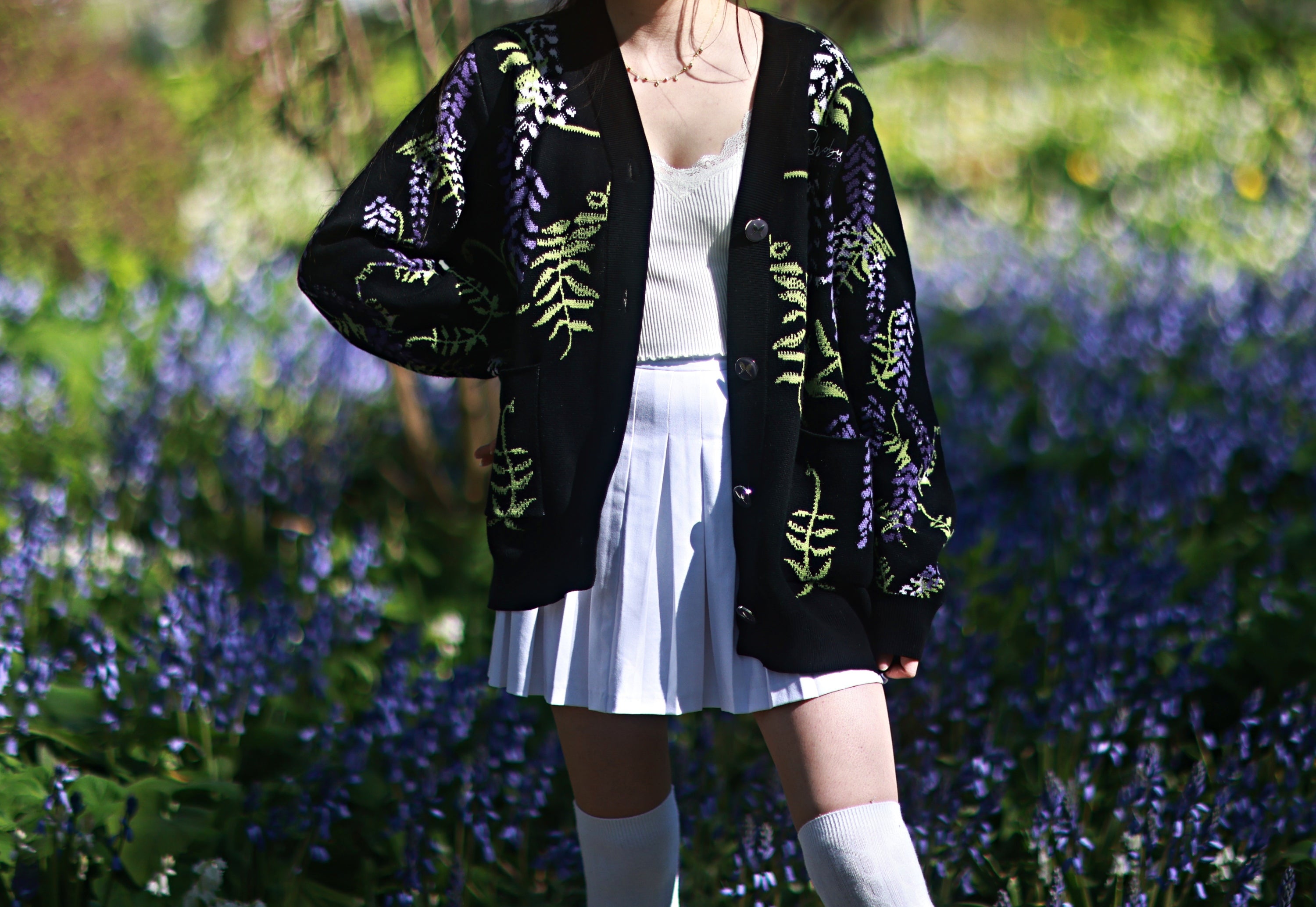 - The sweater also has wisteria jacquard patterns on the sleeves and body