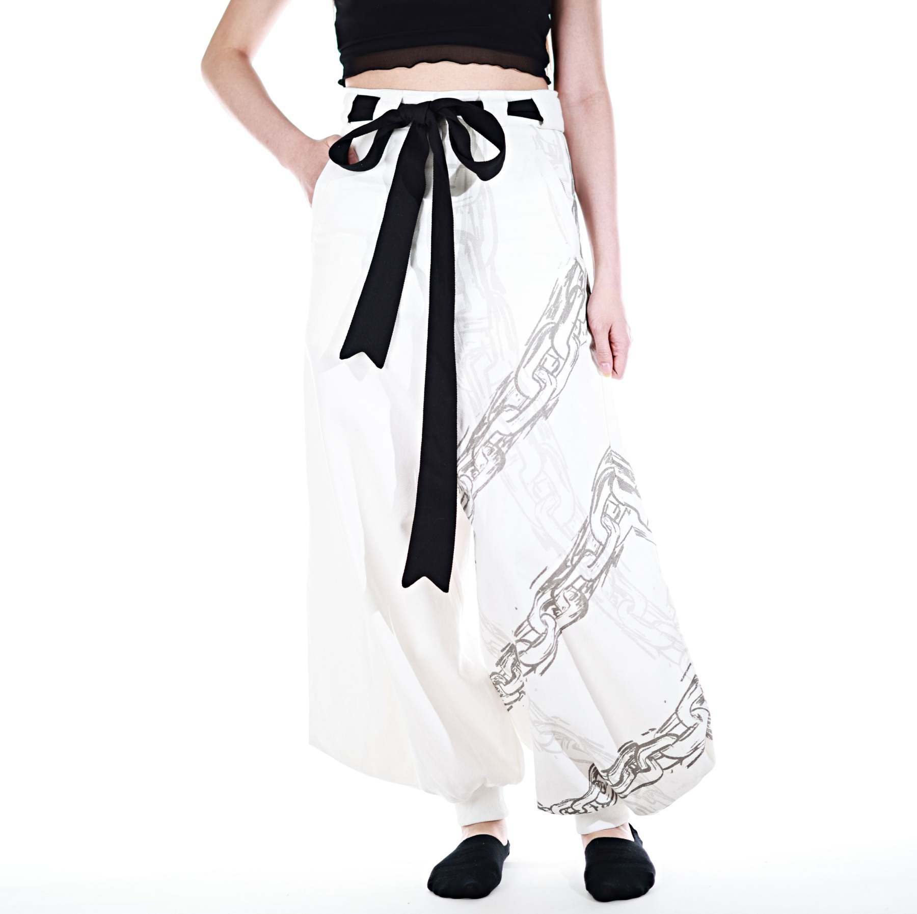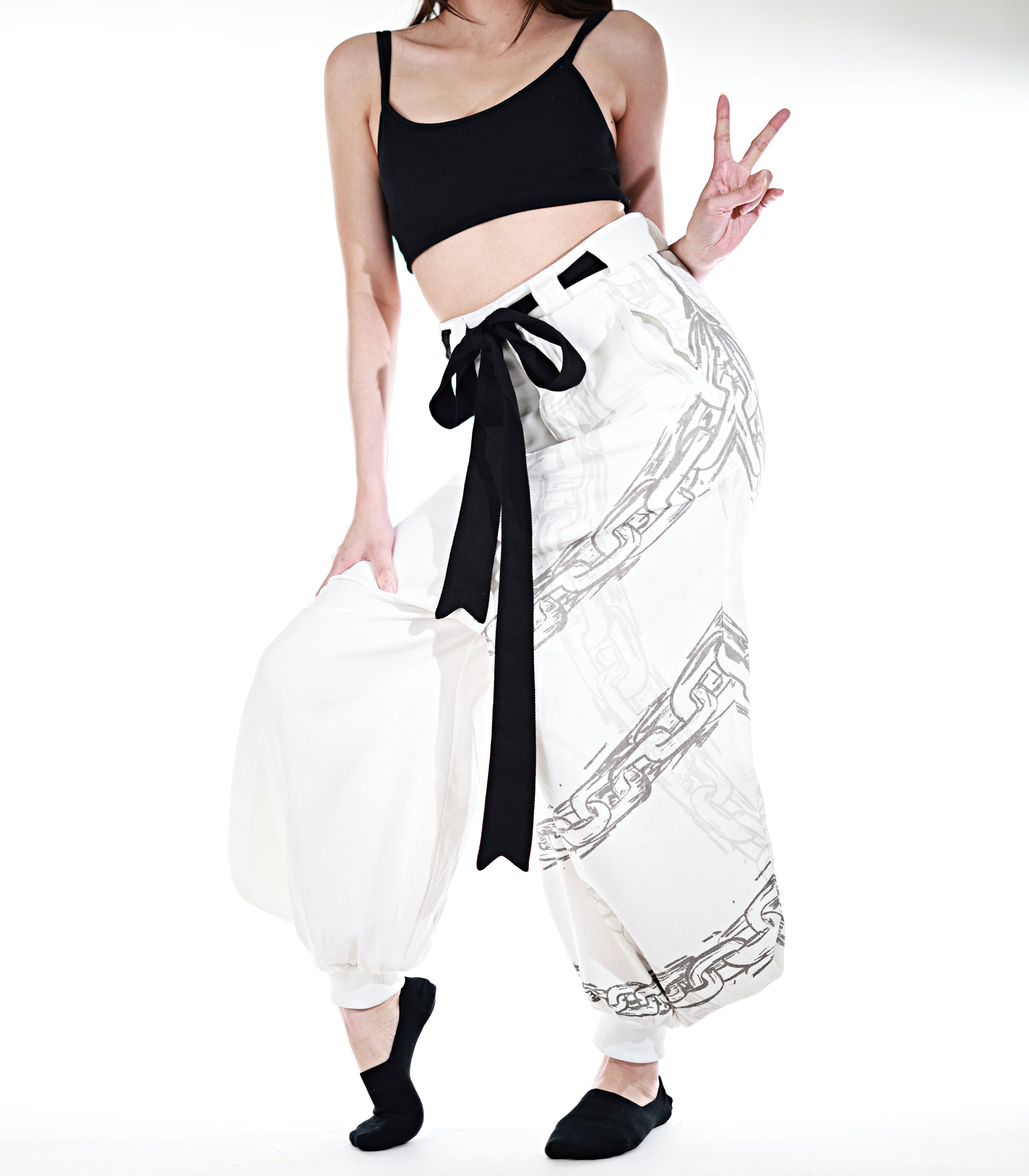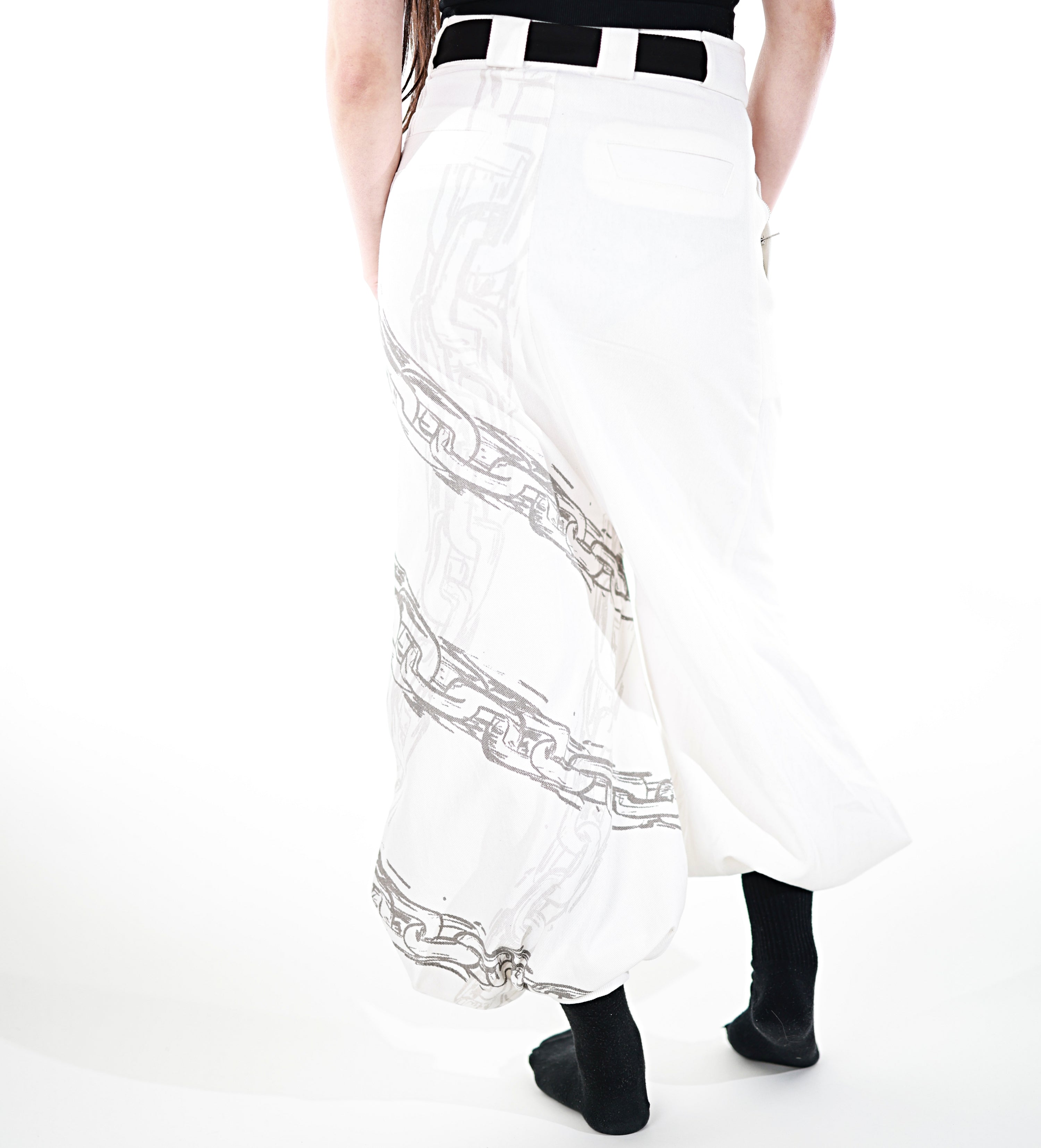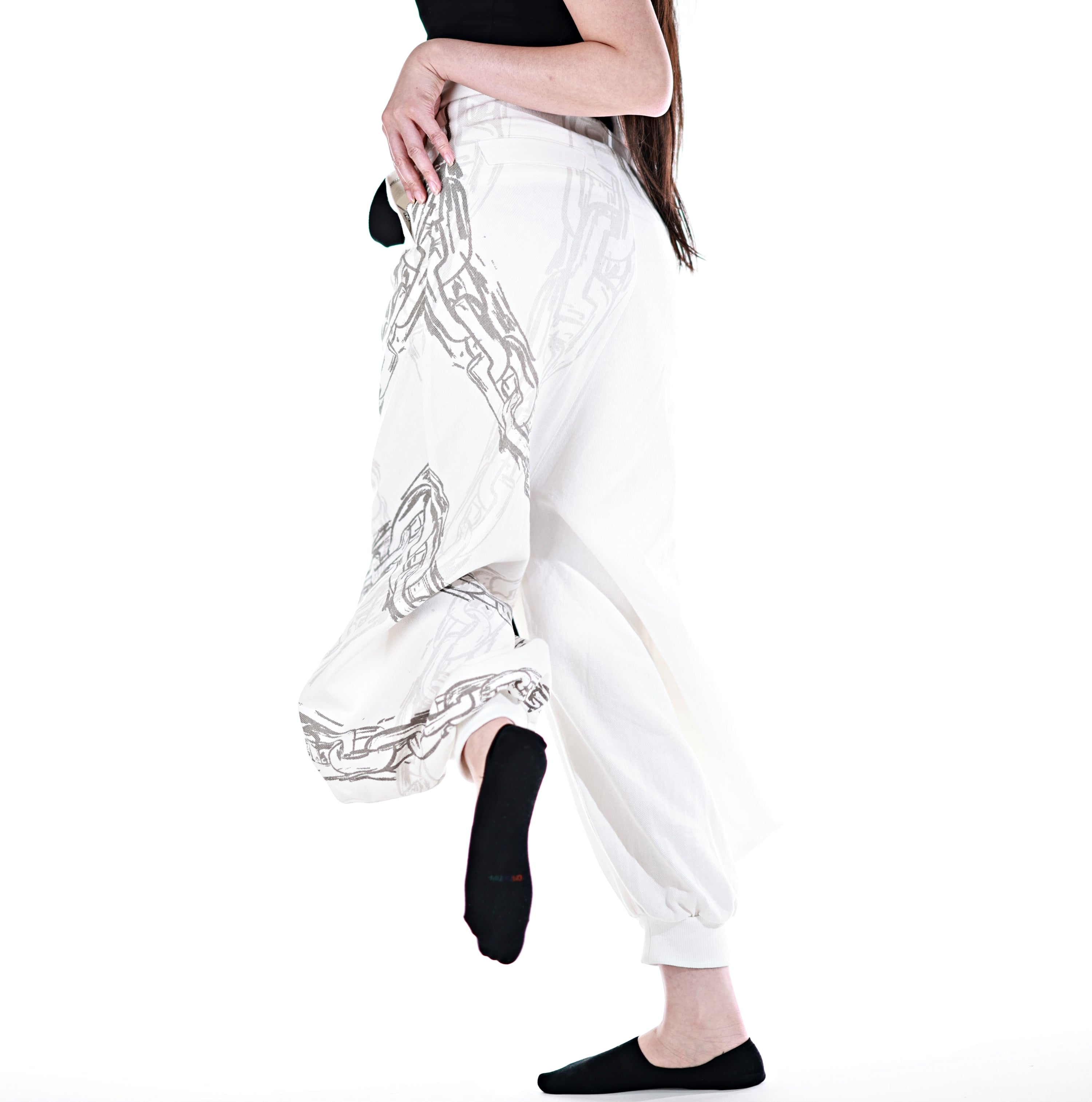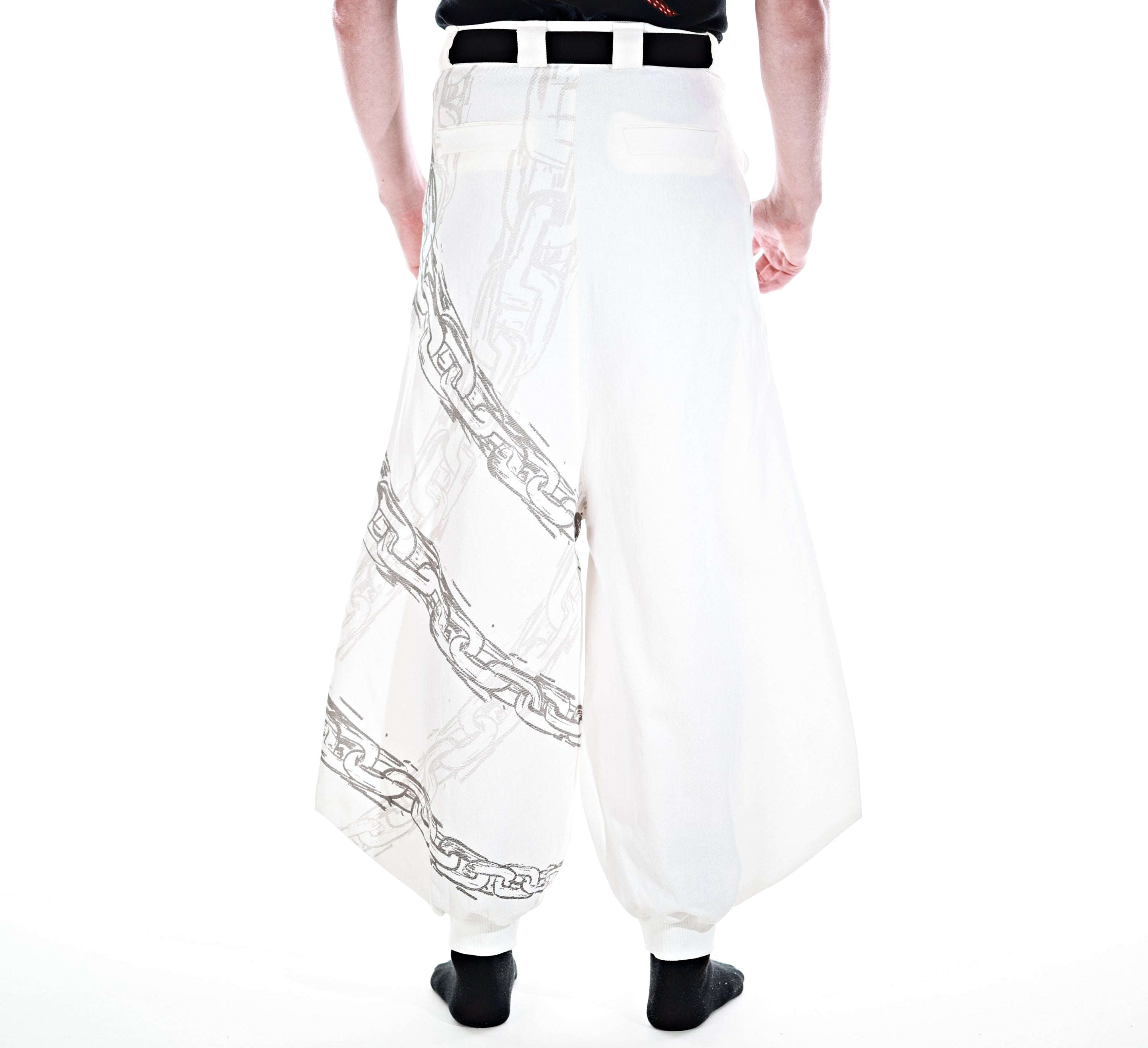 This whole collection features some of the most detailed embroidery, knit & print designs we have ever made. The fabric is made from a very high quality denim material. The chain print is very subtle and matches with the Toji T-Shirt and Sweater from JJK Collection Part II. The patterns add a powerful touch inspired by Toji's attacks to the design. The design has the same shape as the sweater Toji was wearing in the show and is perfect to casually wear on the street. It is supposed to make you comfortable while standing out in a positive way. The pants also have pockets with Zippers in the front and elastic in the back for a comfortable fit.