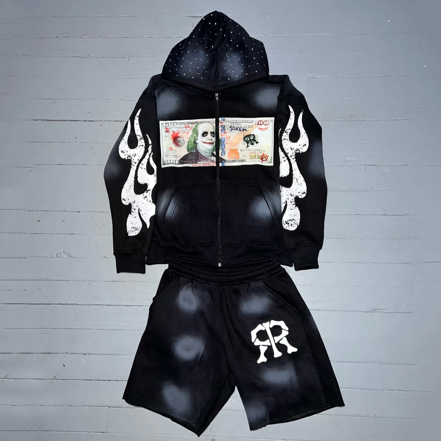 Vintage Washed Zip-Up Hoodie Shorts Two-Piece Set