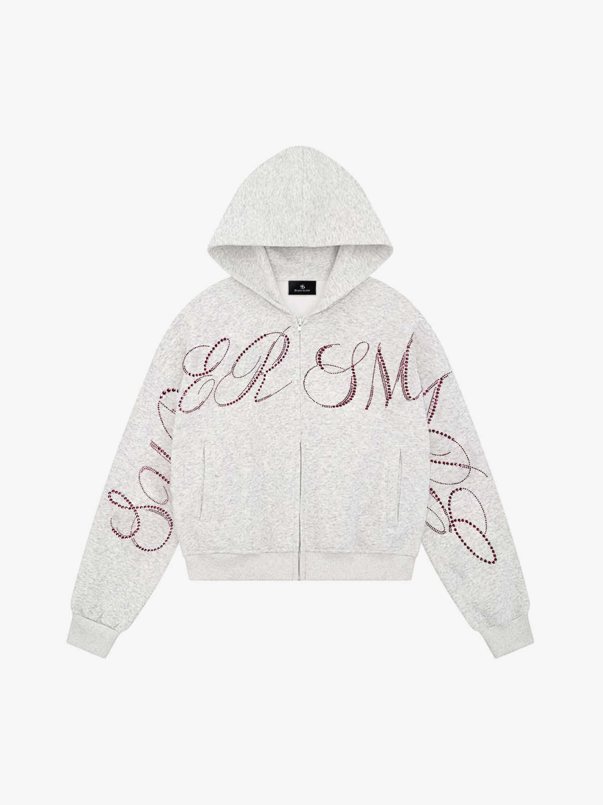 Street Hip-Hop Rhinestone Cropped Zip Up Hoodie