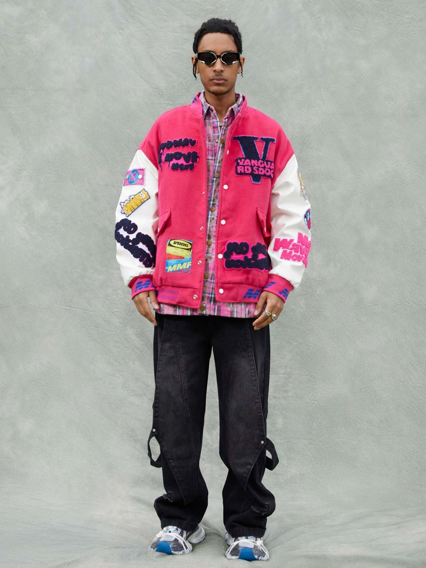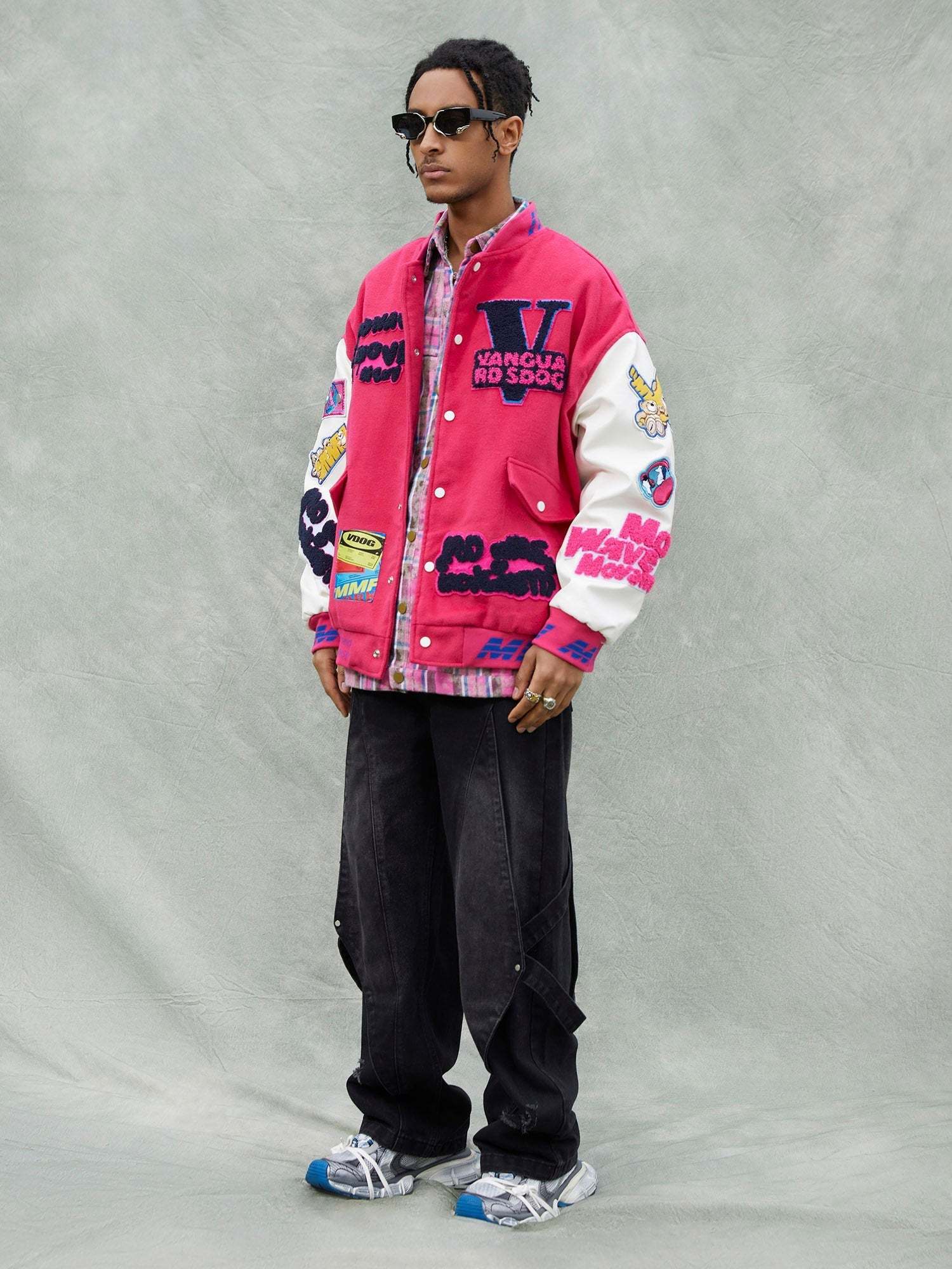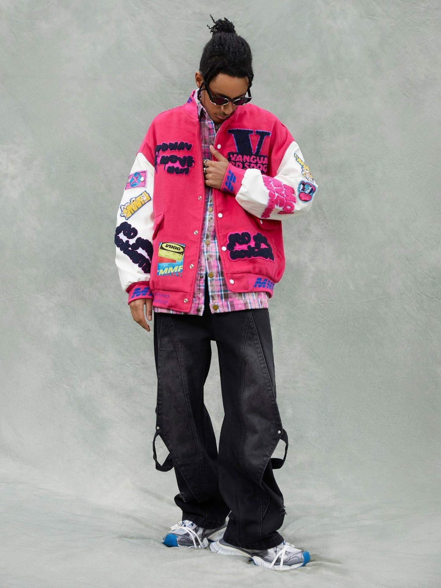 Thesupermade Pink Terry Patch Embroidered Hip Hop Baseball Jersey - 1965