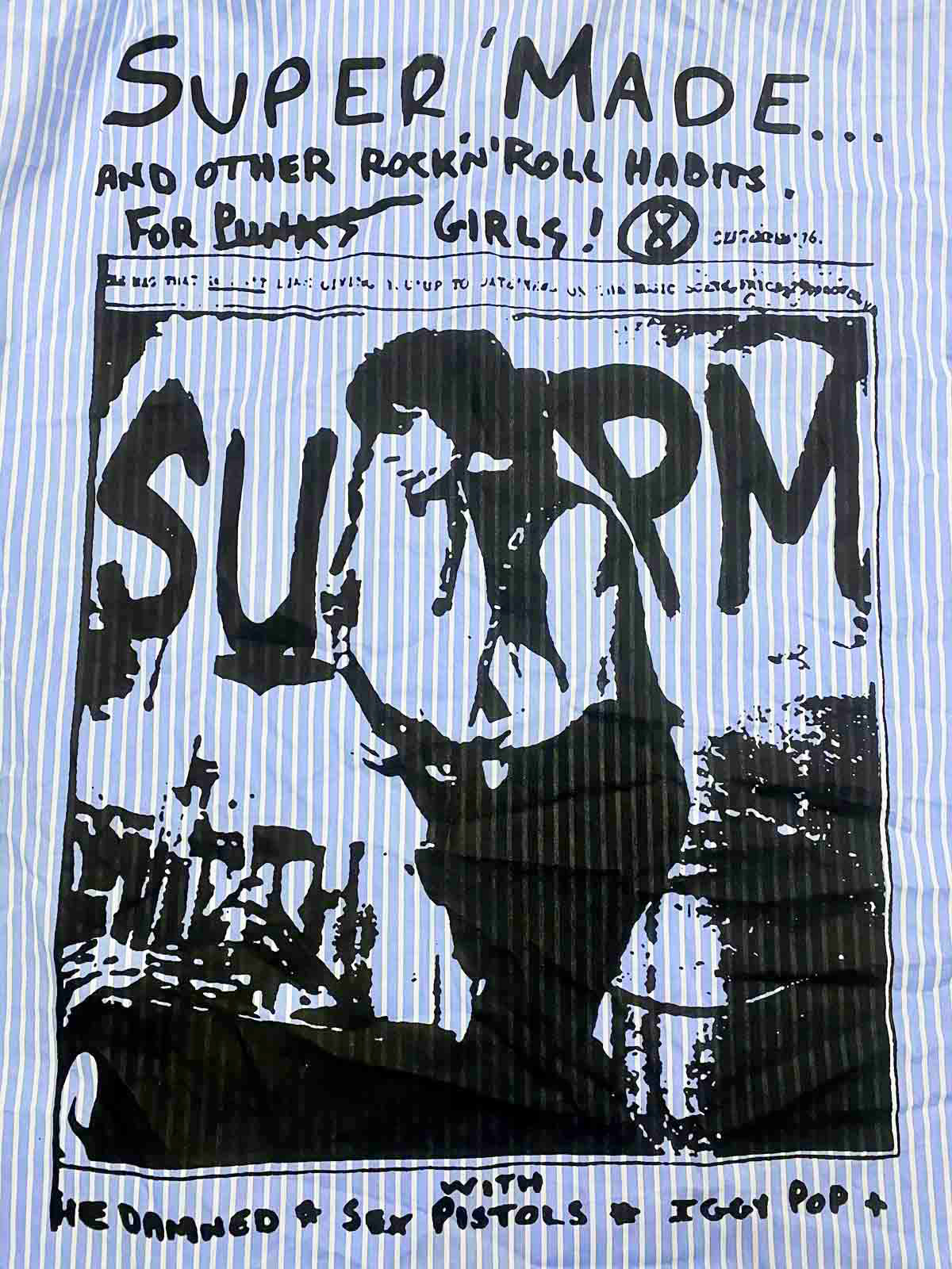 •    Design Elements: Bold graphic print on the back, layered long sleeves under short sleeves, classic collar design