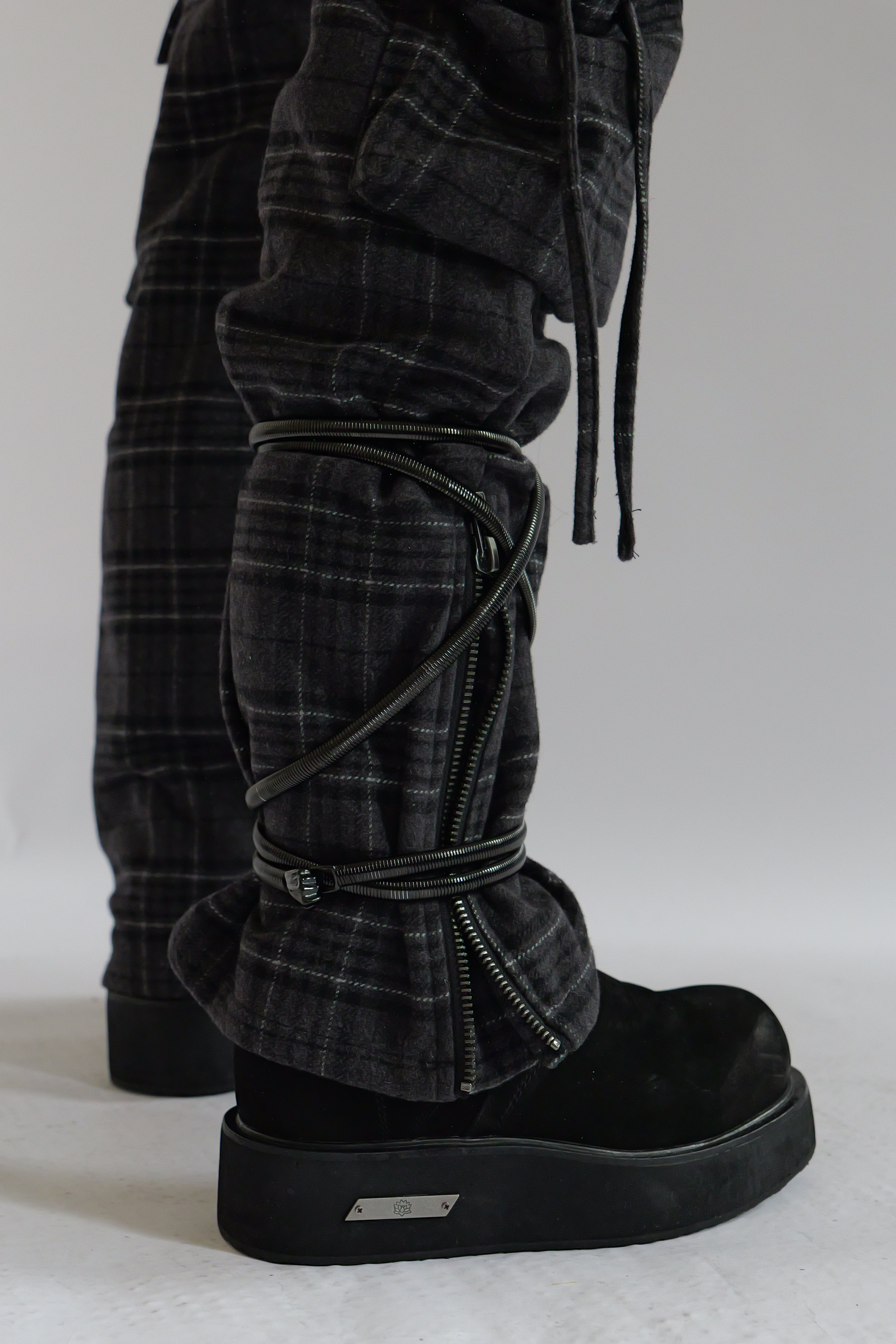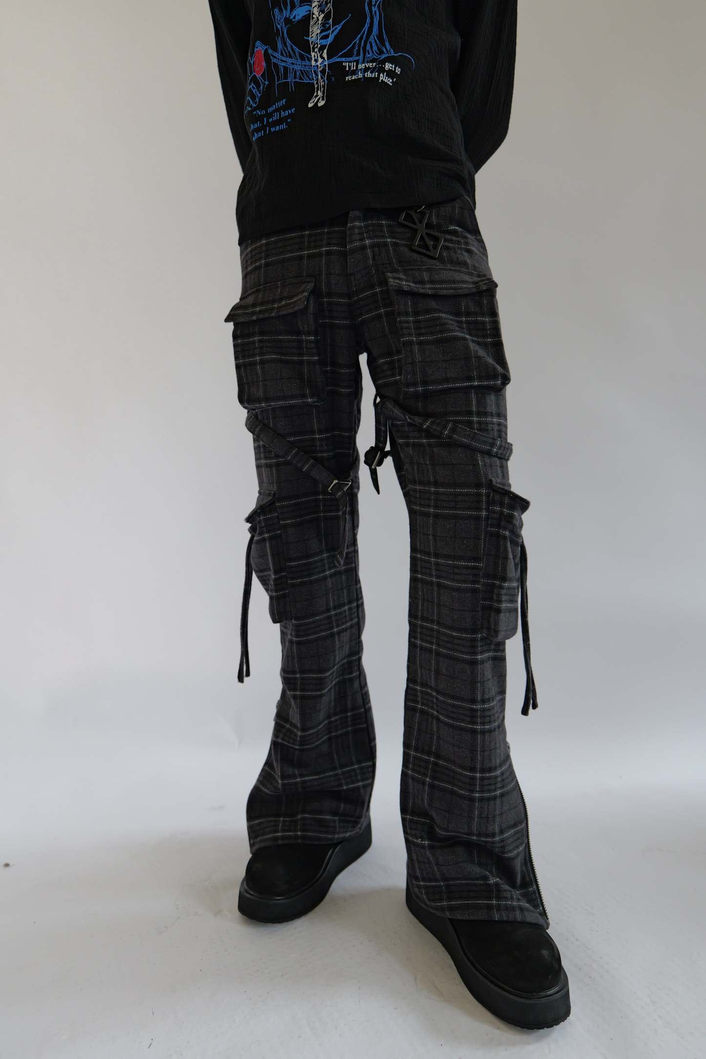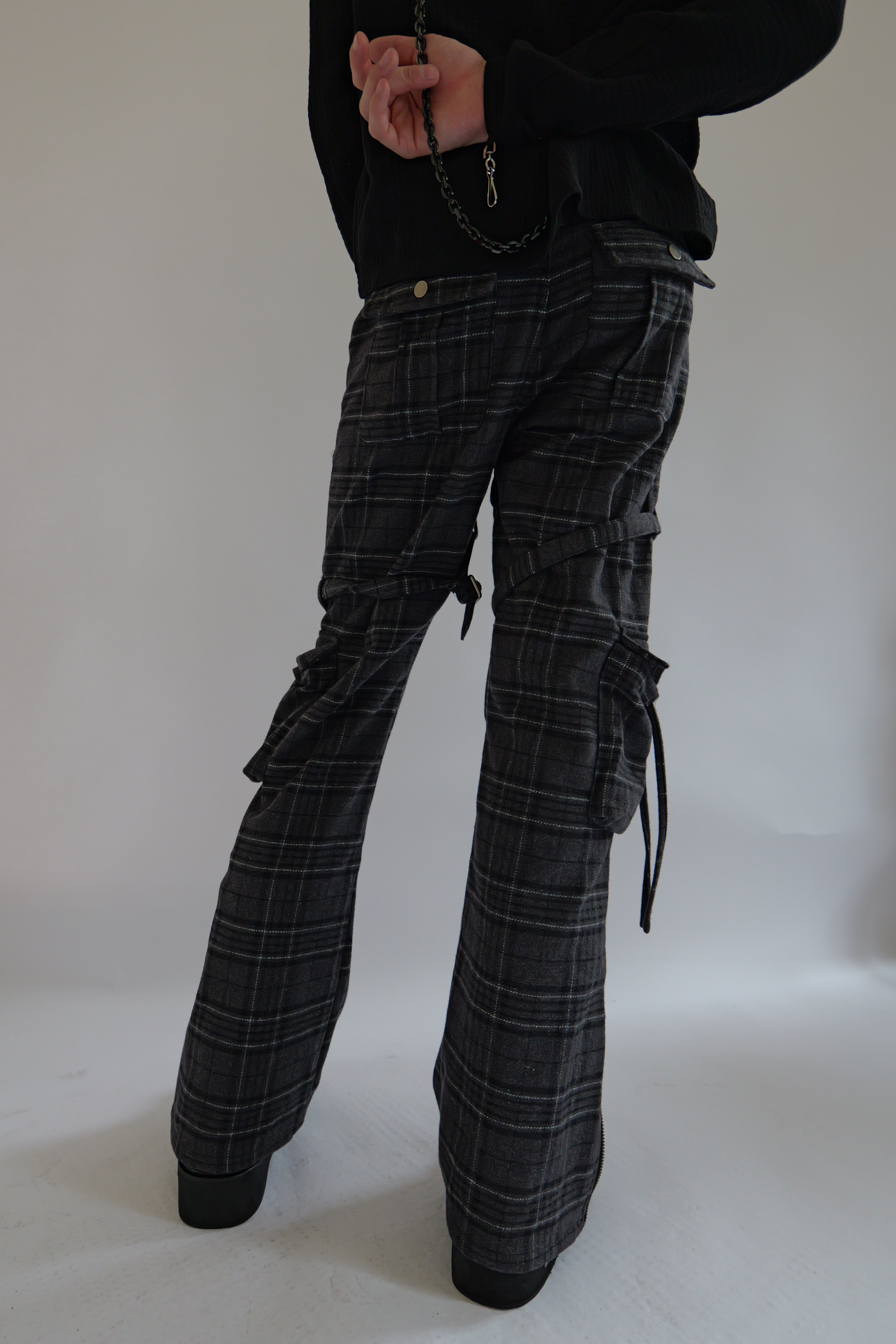 Black Plaid bondage cargos