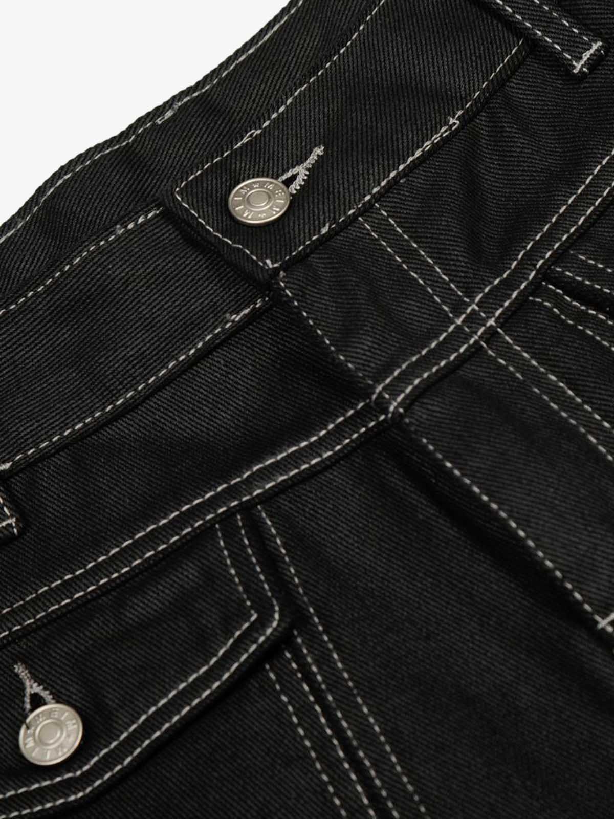 • Design Elements: Contrasting white stitching, multiple functional pockets, high-rise waistline