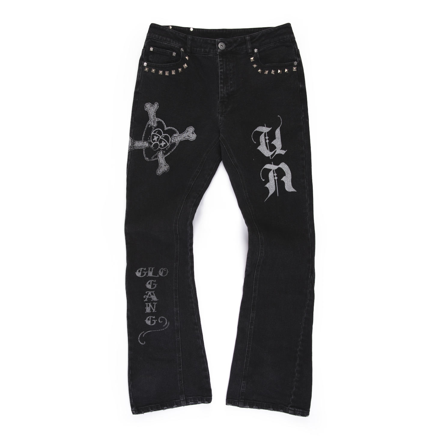 METAL STUDDED STACKED DENIM