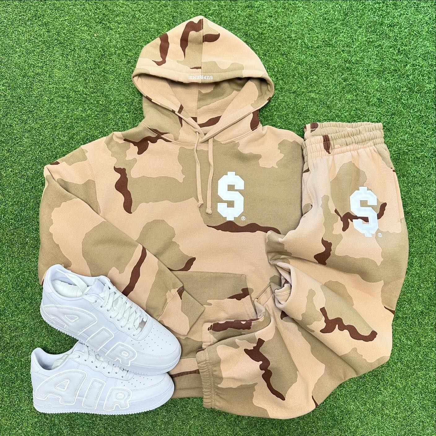 Camouflage Word S Print Two Piece Hoodie Set