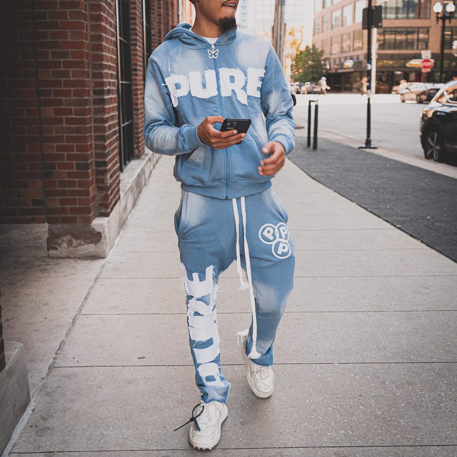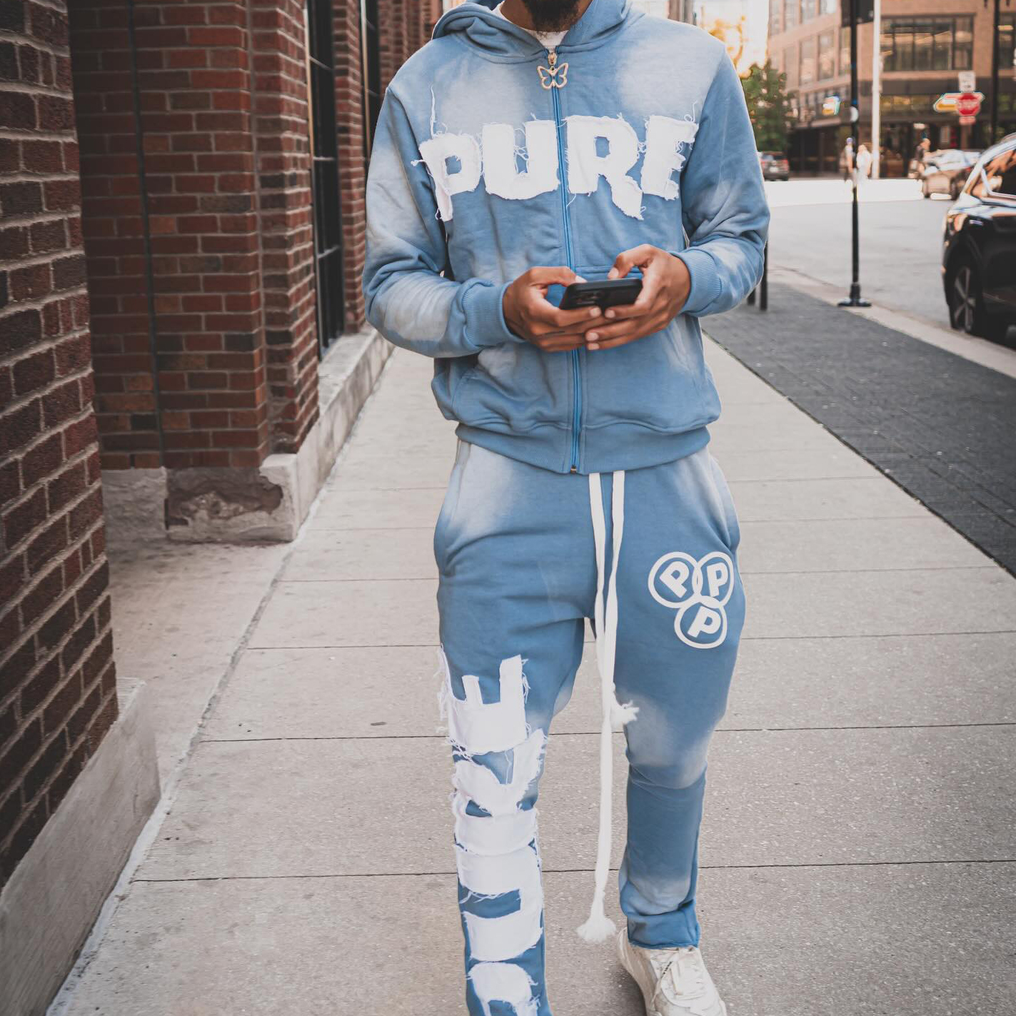 pure mearts patchwork hoodie two-piece set