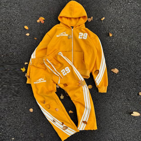 Fashion casual style zipper sweatpants two-piece set