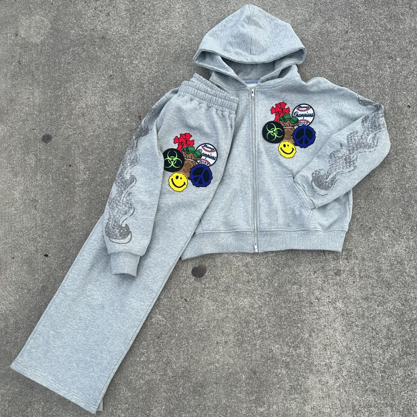 Vintage flame print hoodie set