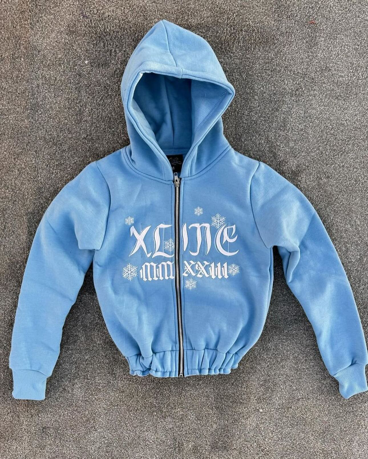 Vintage Snowflake Print Zip-Up Hoodie Set