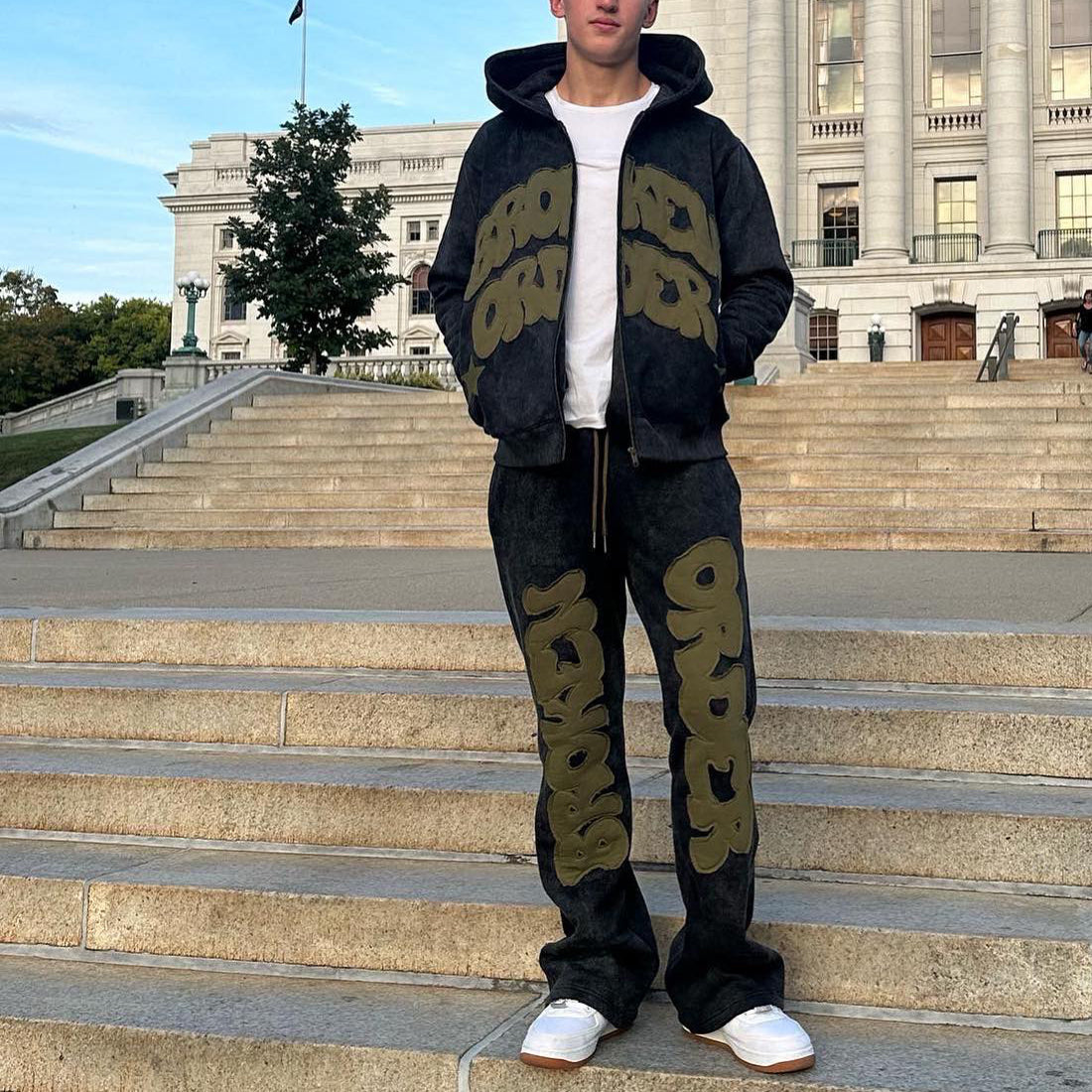 Heartbroken casual street style hoodie trousers two piece set