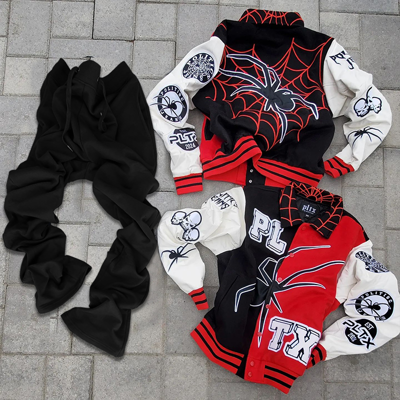 Spider Baseball Jacket and Pants Two-Piece Set