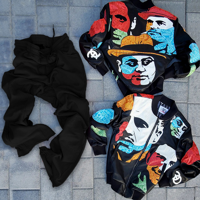 Casual Street Baseball Jacket Pants Two-Piece Set