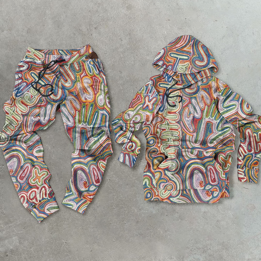 Artistic casual printed casual hoodie set