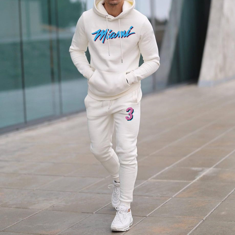 Casual Miami Print Hoodie And Pants Two Piece Set