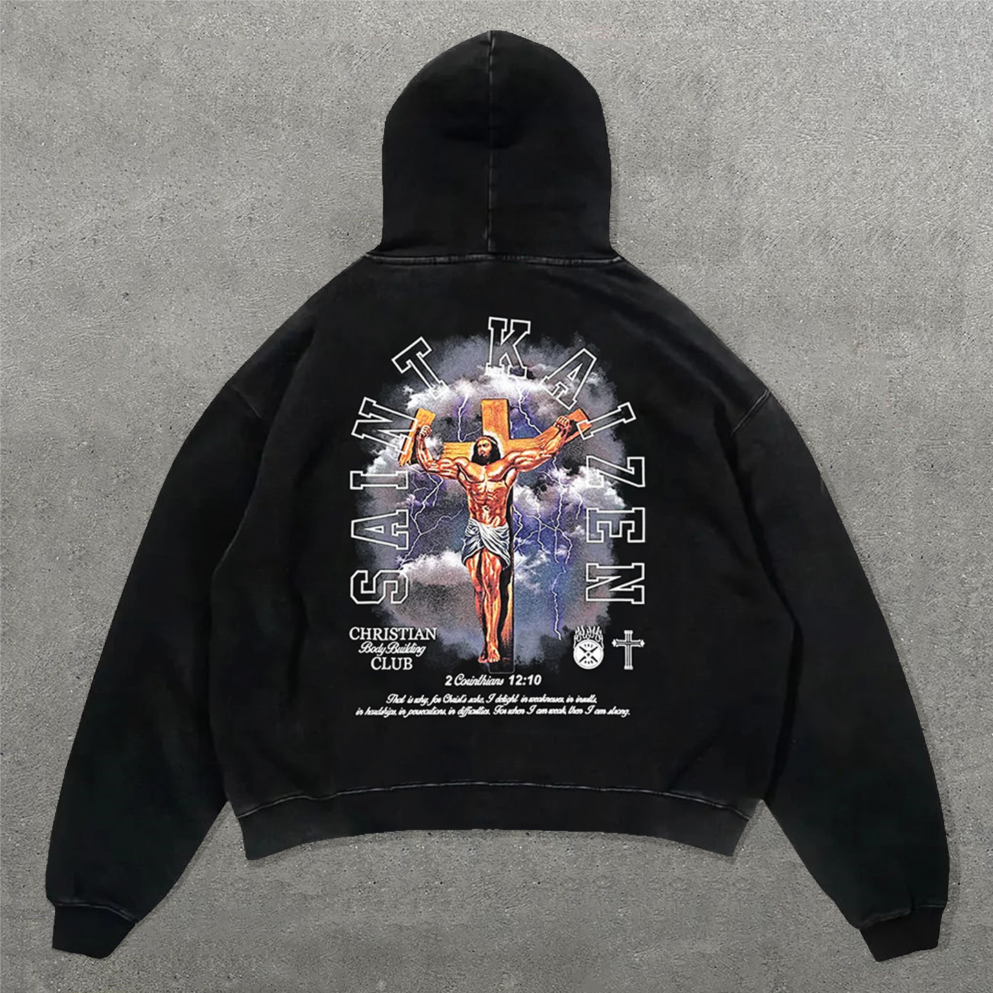 Jesus Christ Print Long Sleeve Applique Embroidered Zipper Hoodies