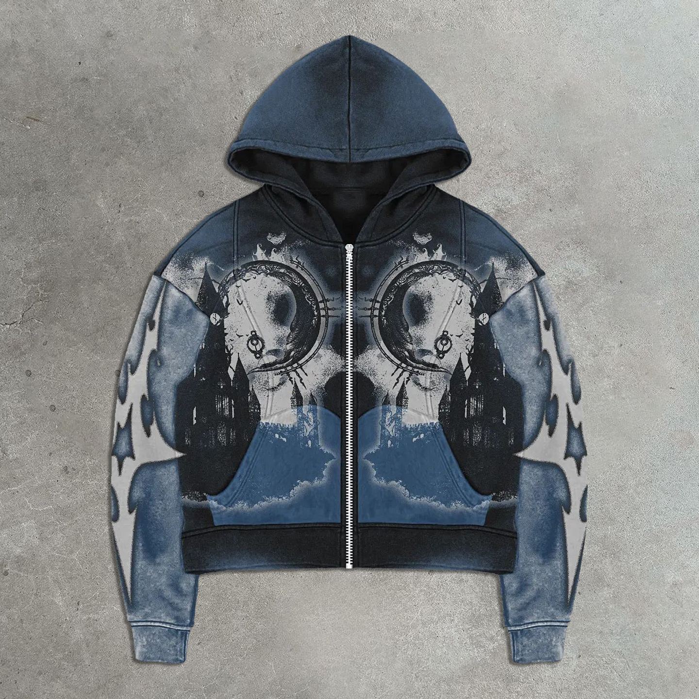 Streetwear zip-up graphic hoodie